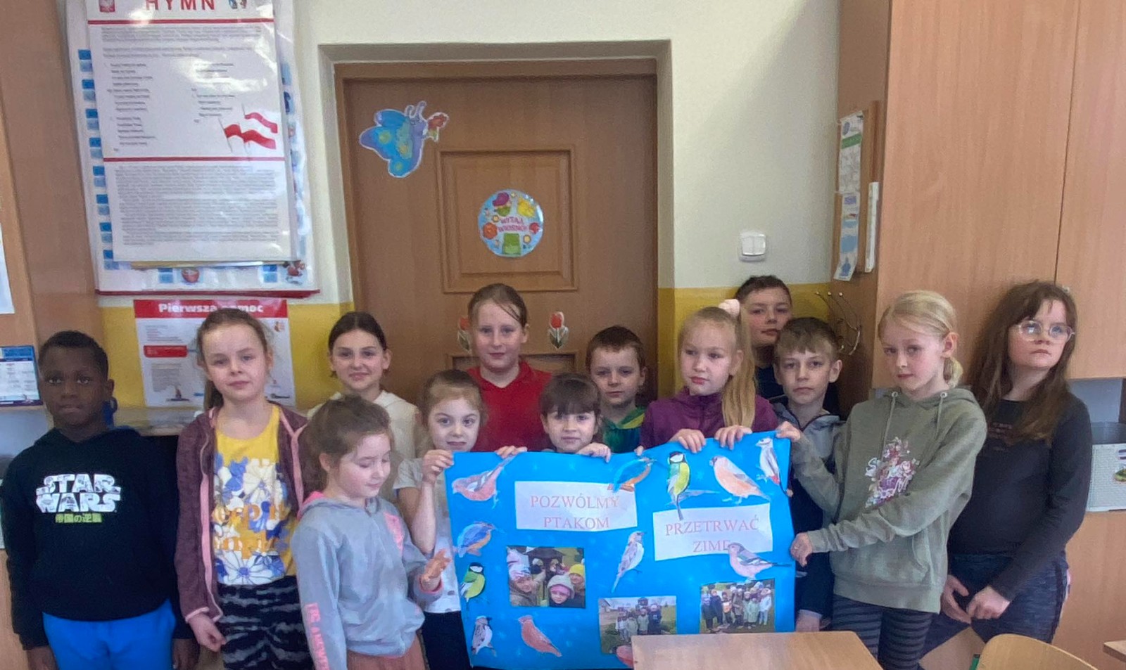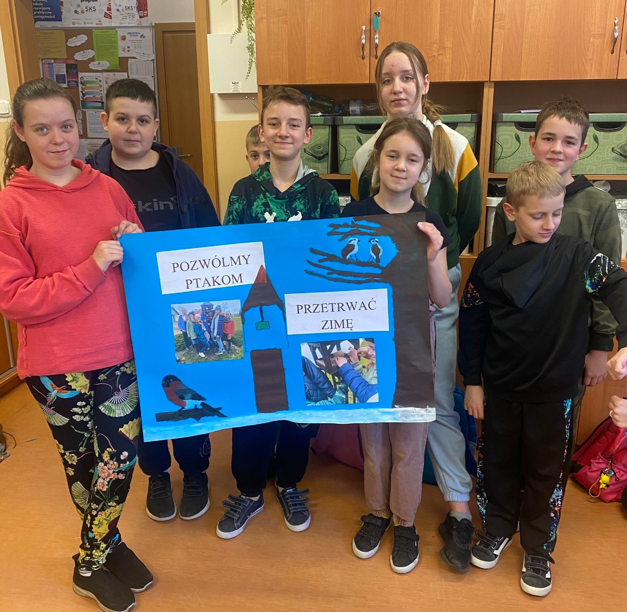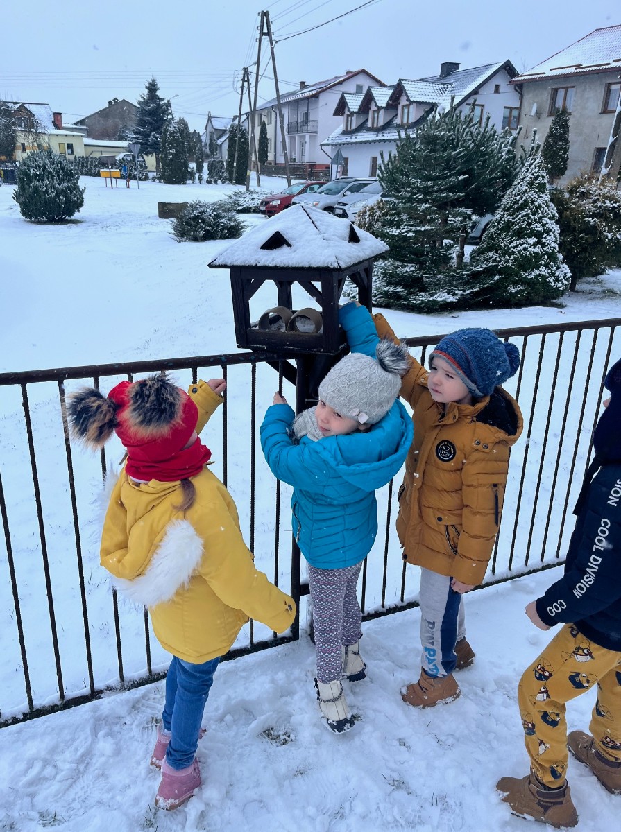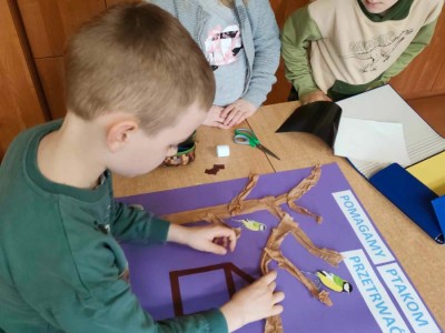 Okres zimowy to czas bardzo trudny i niepewny dla ptaków. W ramach pomocy naszym skrzydlatym przyjaciołom przedszkolaki oraz uczniowie klas I, II i III naszej szkoły wzięli udział w konkursie organizowanym przez Zaborski Park Krajobrazowy pod hasłem „Pomóżmy ptakom przetrwać zimę”. Przez cały okres od późnej jesieni do wczesnej wiosny uczniowie pomagali ptakom regularnie wsypując ziarno do karmników. Gości nam nie brakowało i każdy ptaszek znalazł coś dla siebie. W ramach podsumowania każda z grup wykonała plakat.