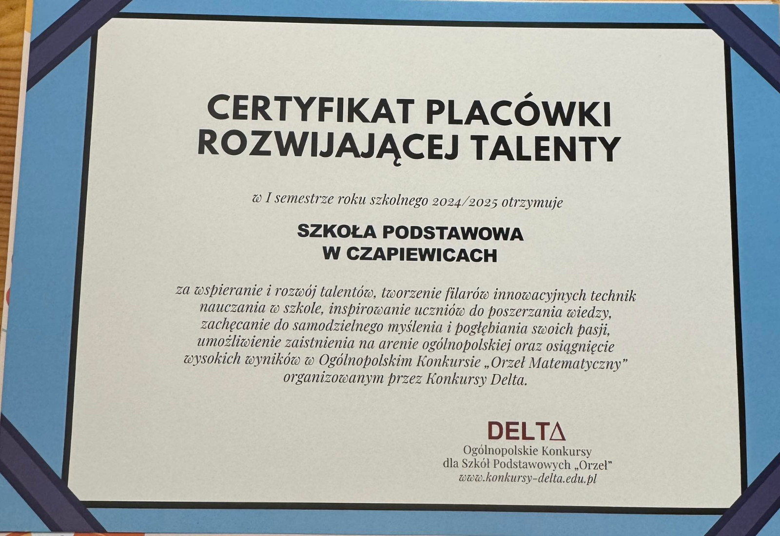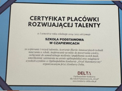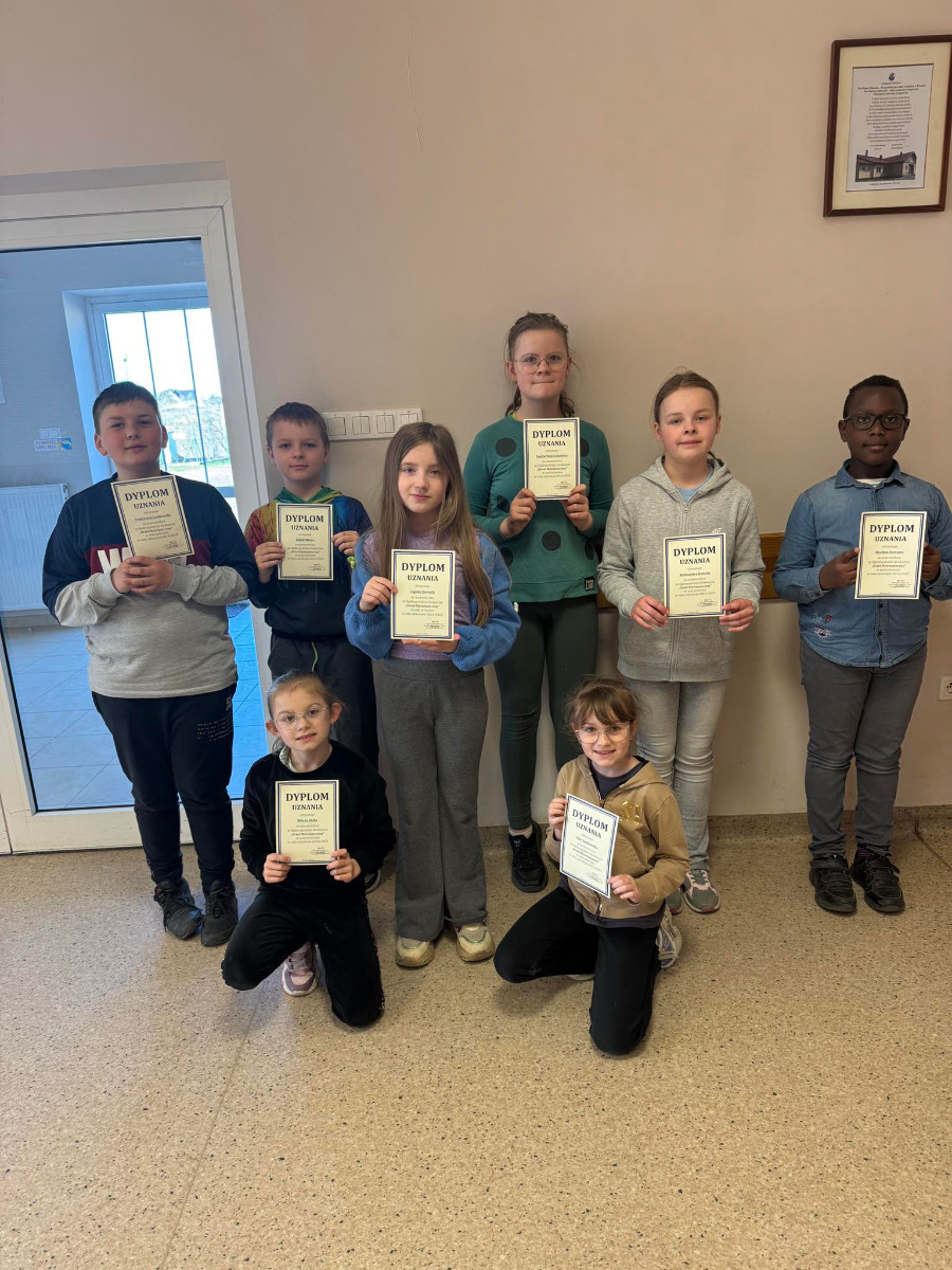Uczniowie klasy trzeciej w pierwszym semestrze wzięli udział w ogólnopolskim konkursie matematycznym "Orły”. Nie udało się dzieciom stanąć na podium, ale była to dla nich możliwość sprawdzenia się w matematyce. Wszystkie dzieci biorące udział otrzymały dyplomy. Natomiast nasza szkoła otrzymała certyfikat placówki rozwijającej talenty.