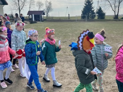 To był niezwykle intensywny, ale wspaniały tydzień! Rozkwitająca wiosna zainspirowała nas do różnorodnych aktywności, które zaangażowały całą naszą szkolną społeczność. Na początku tygodnia nikt z uczniów nie był pytany i nie otrzymał żadnej oceny, ponieważ był to dzień bez ocen. We wtorek wszystkie śpiochy nie musiały się rano przebierać, bo mogły przyjść do szkoły w piżamie. W środę plecak był zbędny, czyli dzieci przyszły bez plecaków. Za to książki zostały przetransportowane z domów w innej formie. W czwartek na każdej przerwie było sportowo. Piątek był zwieńczeniem całego tygodnia. Dzieci przyszły do szkoły w kolorowych ubraniach, z ciekawymi nakryciami głowy oraz w dwóch rożnych skarpetkach. Uczniowie obejrzeli także wiosenny teatrzyk, udali się na przemarsz ulicami wioski oraz zatopiły Marzannę. Dziękujemy wszystkim za zaangażowanie i pozytywną energię! Niech wiosna przyniesie nam wszystkim jeszcze więcej radości i sukcesów!