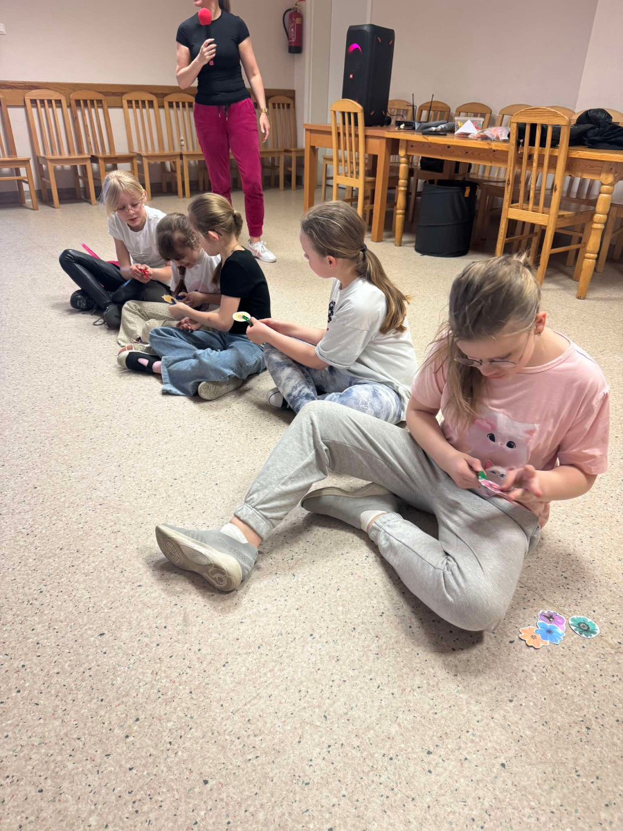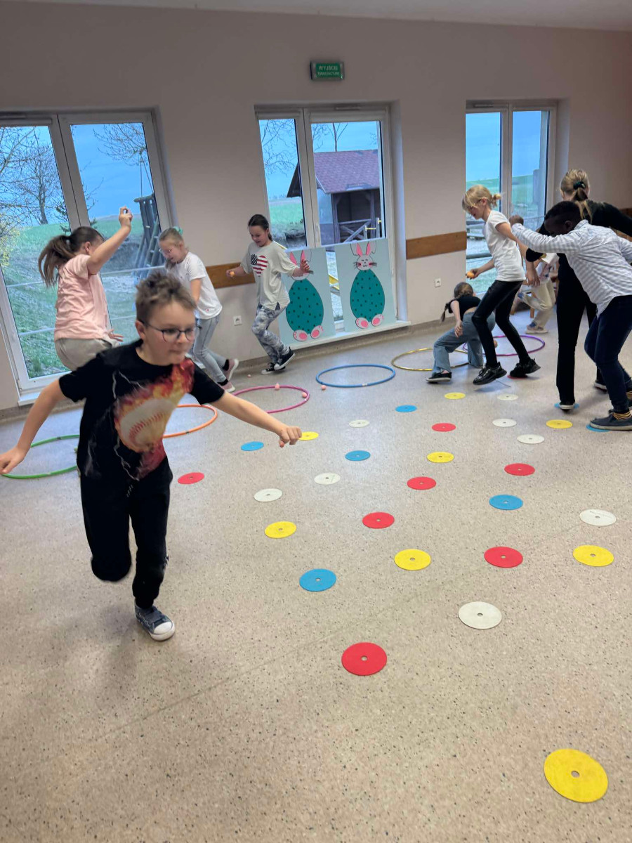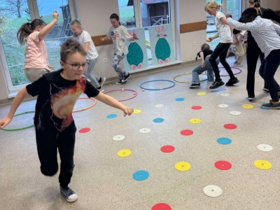 Uczniowie klasy trzeciej w piątek 11 kwietnia brali udział w animacjach prowadzonych przez naszą niezawodną panią Annę Sikorę. Zajączek już kica po naszych ogrodach i by nie za daleko uciec dzieci przywołały go zwinnymi zabawami, tańcami w rytm wiosennej muzyki. W tym roku z pewnością odwiedzi każde dziecko. Dzieci zadowolone i zmęczone wróciły do szkoły na zajęcia edukacyjne. Dziękujemy pani Aniu na rozruszanie i ciekawe zabawy wielkanocno-wiosenne.