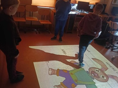 Użyliśmy także magicznego dywanu, który pozwolił nam zanurzyć się w wielkanocnej atmosferze dzięki interaktywnej grze.