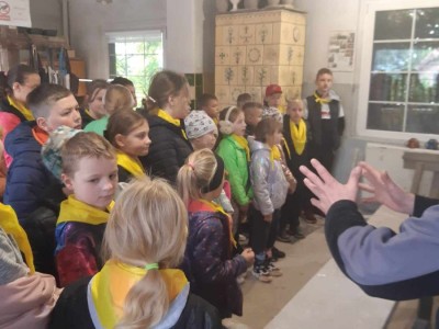 Dnia 12.10.24r. uczniowie klas IV-VI z paniami K. Olszewską i M. Rudnik pojechały na wycieczkę do Chmielna i Tuchlina. Wyjazd zorganizowany został w ramach zajęć z języka kaszubskiego. Dzieci poznały historię zwiedzanych miejsc oraz wzięły udział w warsztatach edukacyjnych.