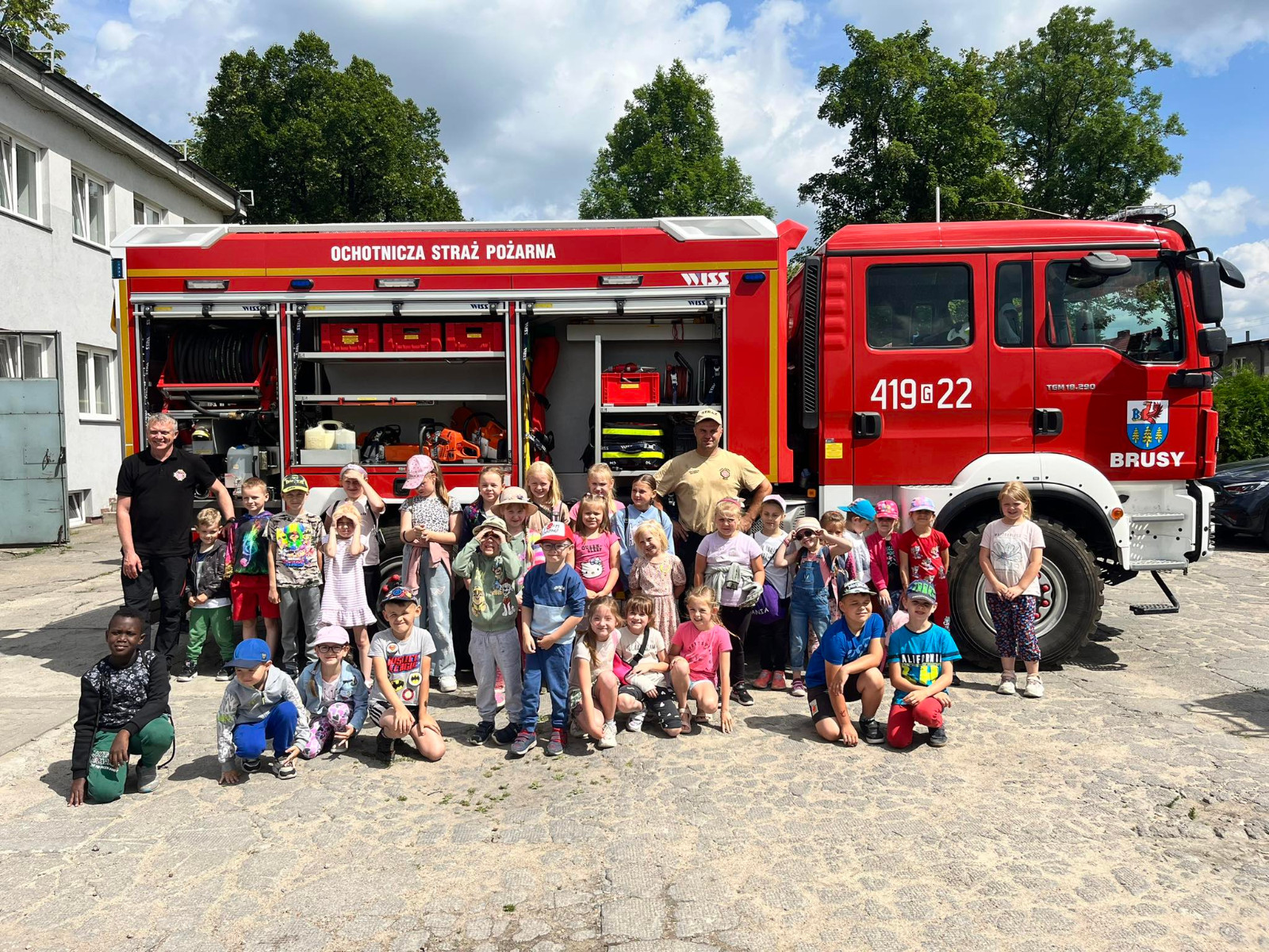 6 czerwca przedszkolaki oraz dzieci z klas I-III wybrały się na wycieczkę do Brus gdzie odwiedziły Posterunek Policji oraz Straż Pożarną. Dzieci z zainteresowaniem słuchały opowiadania o codziennej pracy strażaków i policjantów.Duże zainteresowanie wzbudziło oglądanie radiowozu policyjnego oraz wozu strażackiego. Na zakończenie dzieci wraz ze swoimi paniami wybrały się na lody. Oprowadzającym nas Policjantom i Strażakom dziękujemy za uprzejmość i cierpliwość jaką nam okazali.