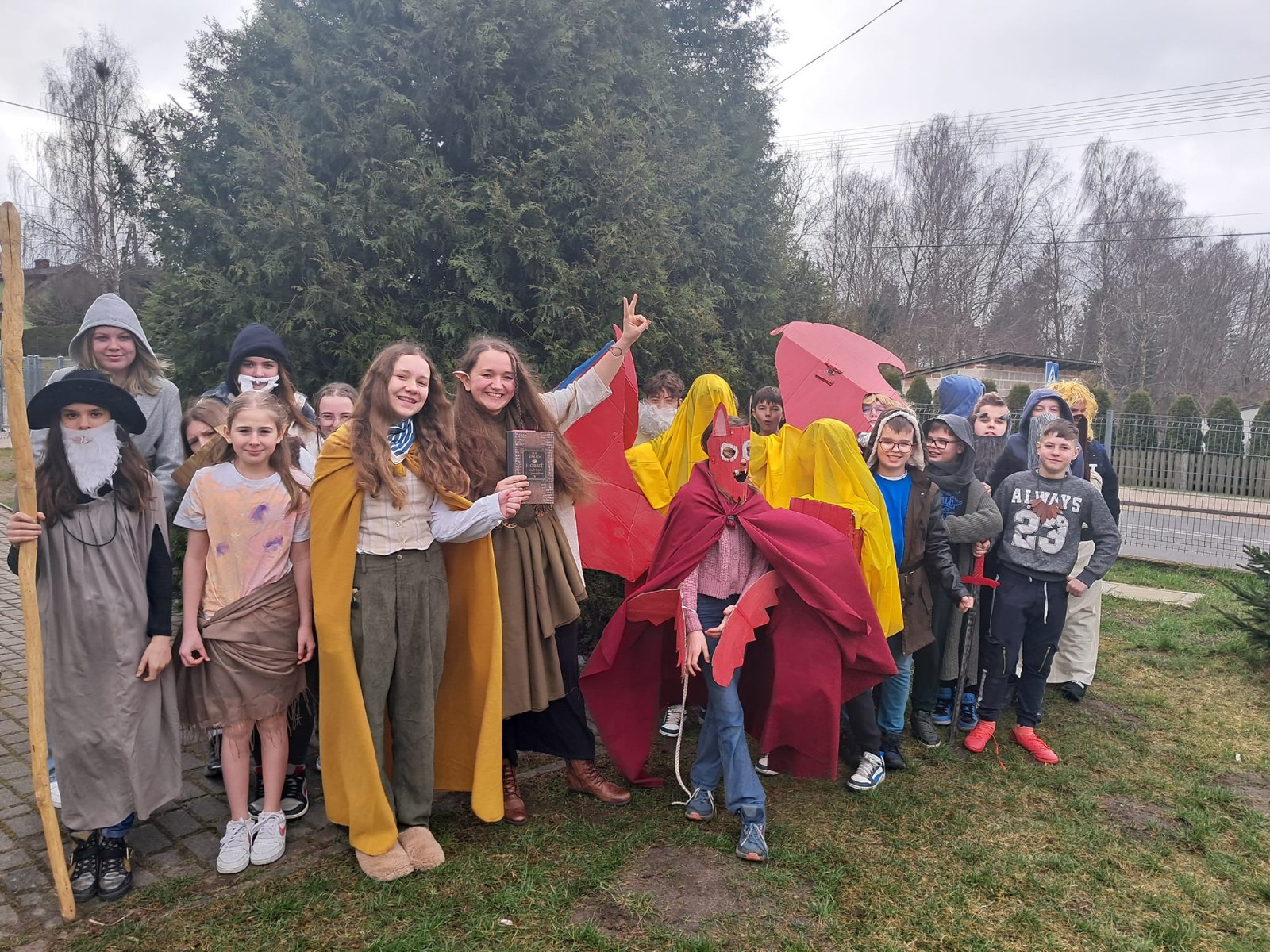 Zaś w poniedziałek, 18 marca, uczniowie wcielili się w bohaterów literackich, przygotowali posiłek opisany w lekturze oraz odzwierciedlili początkową scenę z książki, czyli wizytę w norce Bilba Bagginsa. Rekwizyty, scenografia i kostiumy uczniów z niezwykłą nutą baśniowości przenosiły wszystkich do wyjątkowego świata literatury fantasy!