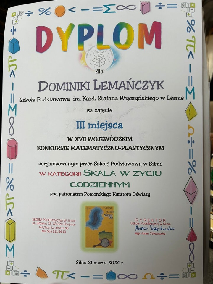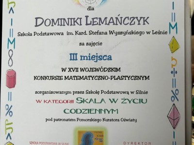 III miejsce w kategorii „Skala w życiu codziennym ” otrzymała Dominika Lemańczyk z klasy VII.