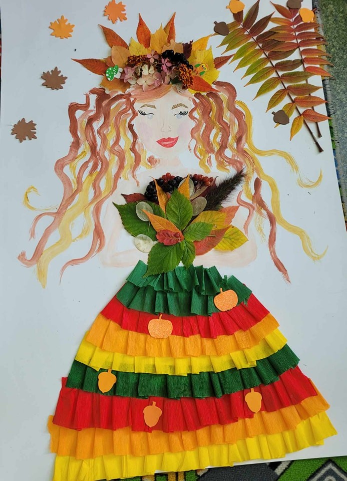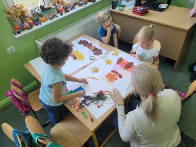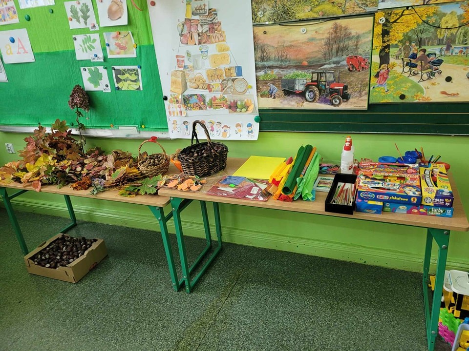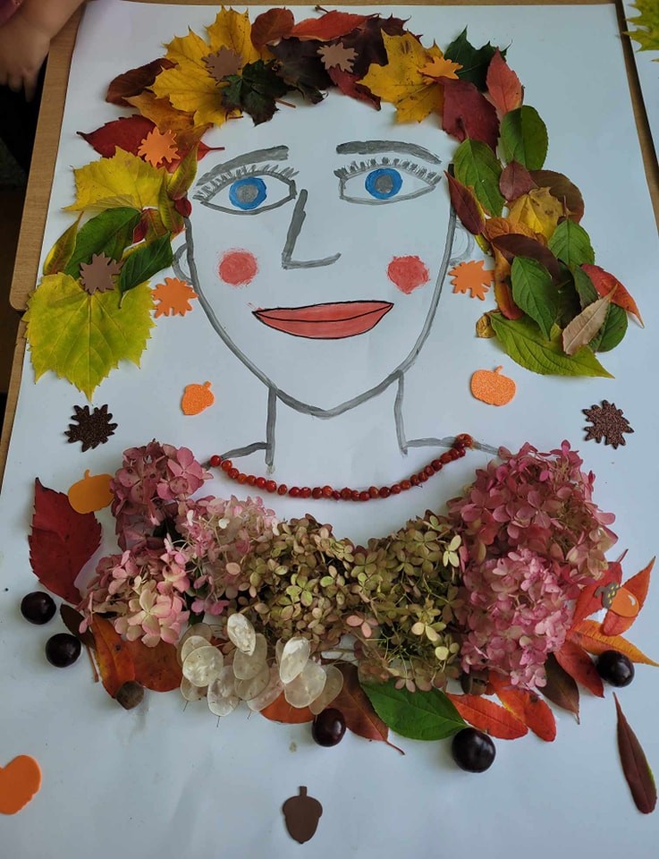 Korzystając z uroków jesiennej przyrody, 16 października 2023 r. chętni Rodzice przybyli do przedszkola w Przymuszewie, aby wziąć udział w warsztatach pt. "Pani Jesień". Zadaniem przybyłych gości było wykonanie w parach, bądź trójkach "Pani Jesieni" na białym arkuszu papieru, wykorzystując wcześniej zgromadzone dary obecnej pory roku podczas przedszkolnych i domowych spacerów, kredki, farby i wiele innych ozdób. W trakcie tworzenia prac... sala przedszkolna zrobiła się kolorowa i pachnąca od jesiennych liści! Dzięki naszym wspaniałym Rodzicom powstały przepiękne wizerunki Pani Jesieni.