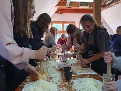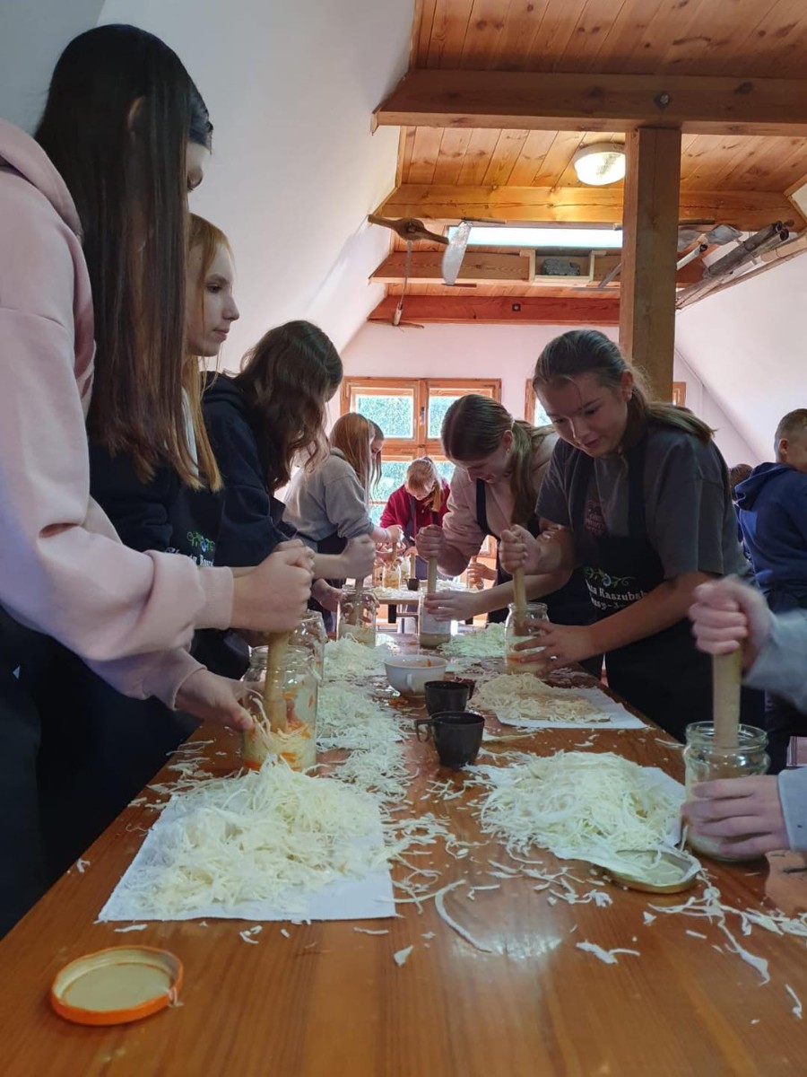 Uczniowie z klasy VIII i VI uczący się języka kaszubskiego w Szkole Podstawowej im. Kardynała Stefana Wyszyńskiego w Leśnie uczestniczyli w super warsztatach mówiących o naszej tradycyjnej kapuście i jej przetworach. Niezwykłym doświadczeniem było samodzielne ukiszenie w/w kapusty.