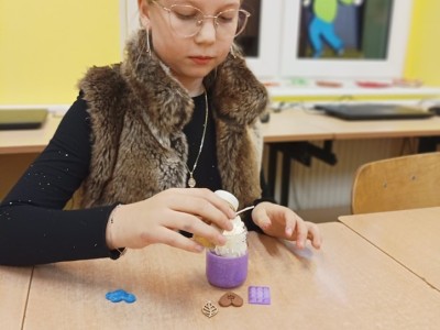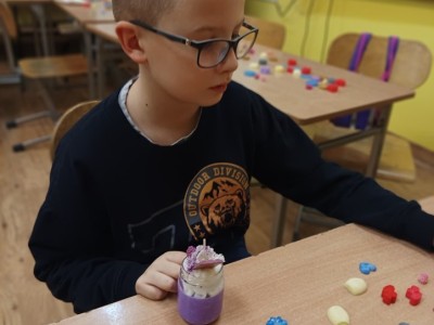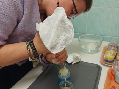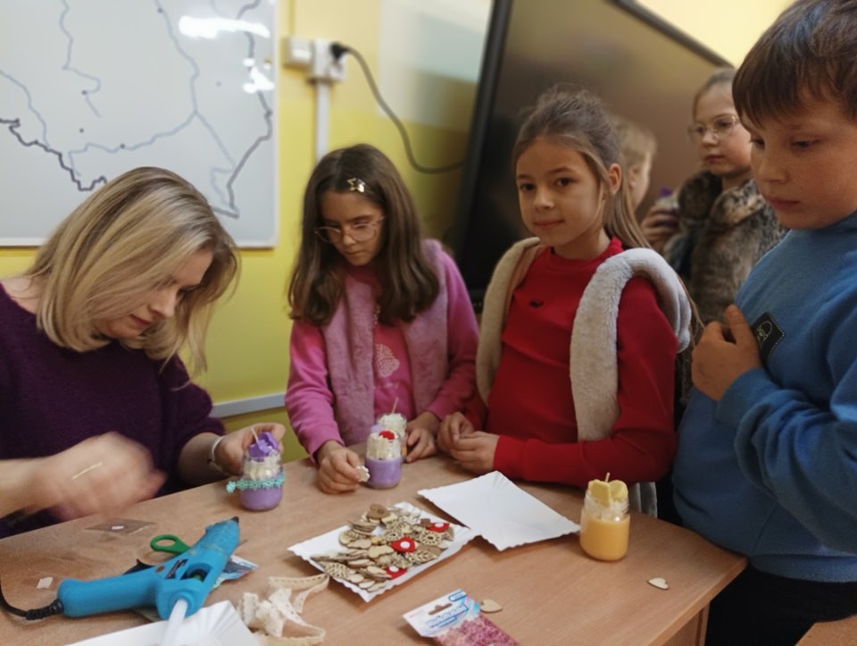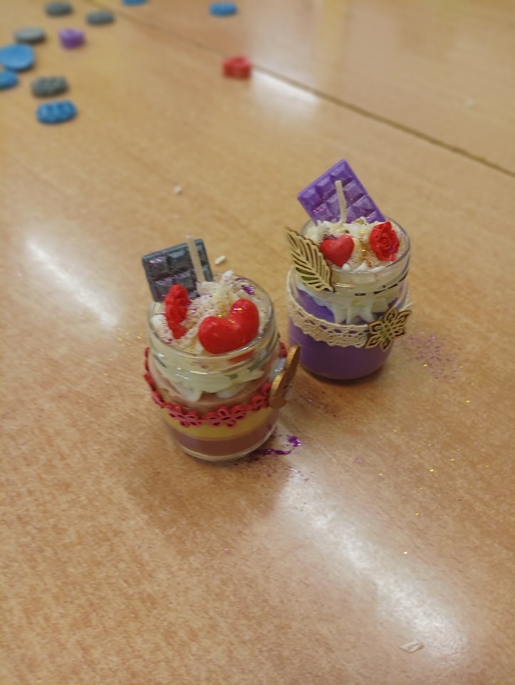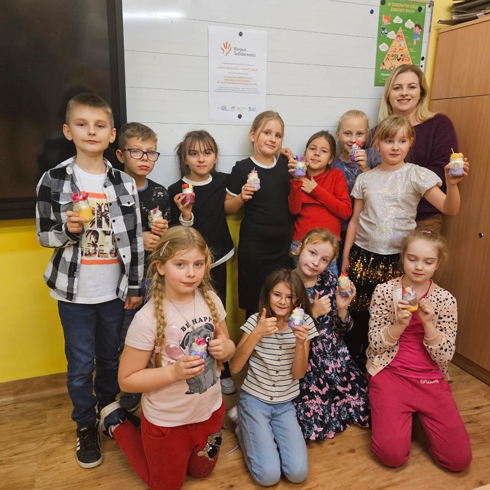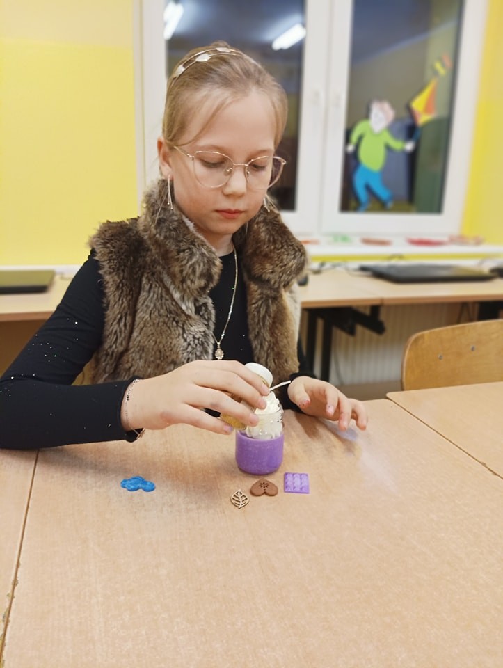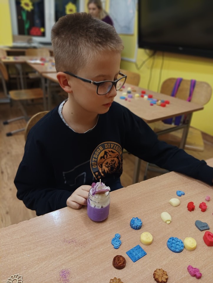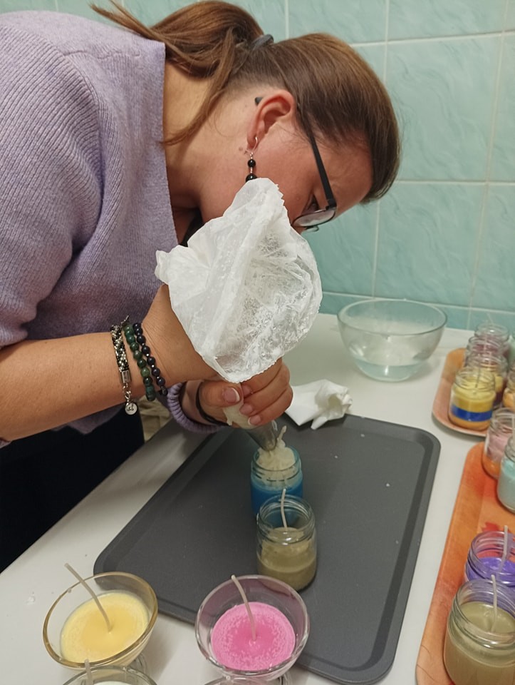 Pierwszym etapem projektu było przygotowanie ozdób woskowych do świec sojowych, co stanowiło doskonałą okazję do wspólnej pracy, rozwijania umiejętności manualnych oraz kreatywności. Kolejnym punktem była organizacja warsztatów tworzenia świec sojowych dla klas 3 i 4, które odbyły się 14 listopada 2024 r.. Zajęcia prowadzone były przez wolontariuszy pod opieką p. Moniki, p. Iwony, p. Ani oraz p. H. Majkowskiej i p. M. Szymlek. Podczas warsztatów, oprócz pracy twórczej, zorganizowana została również dyskoteka. Uczniowie mieli okazję skorzystać z poczęstunku w postaci pizzy. Wydarzenie to stało się doskonałą okazją do integracji starszych i młodszych uczniów, a także do szerzenia idei wolontariatu, szczególnie wśród młodszych klas, które miały możliwość poznać wartość wspólnej pracy i wzajemnej pomocy.