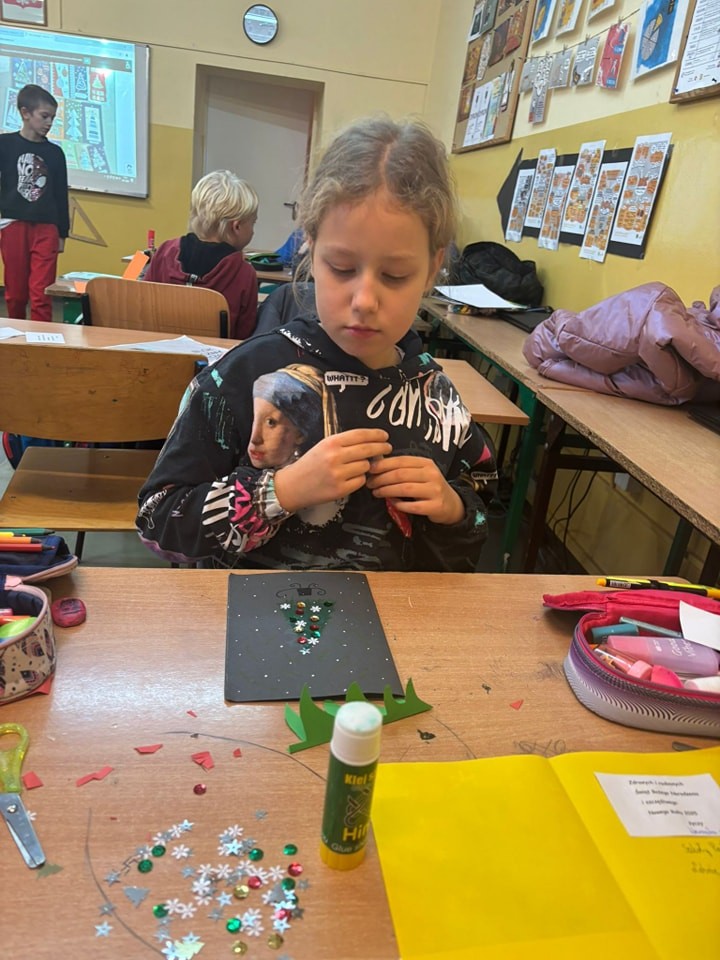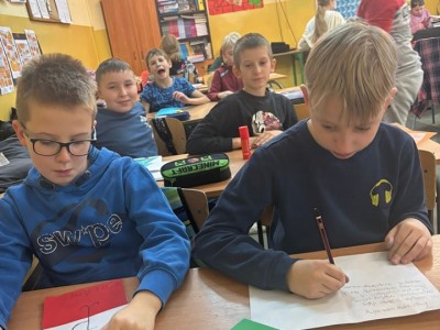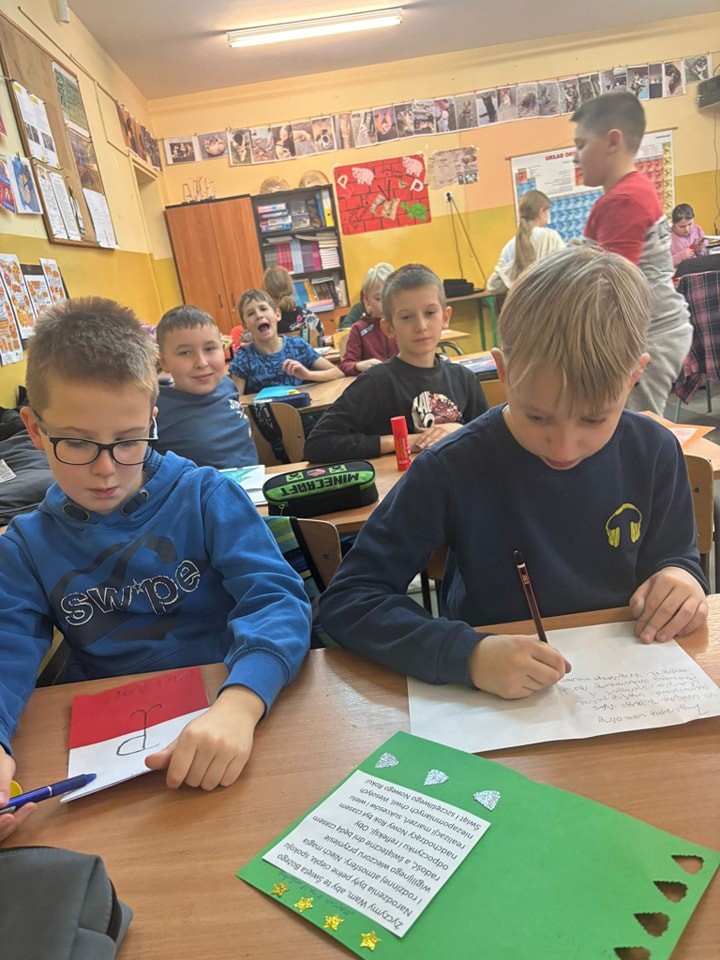 Uczniowie naszej szkoły włączyli się do ogólnopolskiej akcji „Serce za odwagę” organizowaną przez Fundację Pamięci Narodów. W ramach tej inicjatywy uczniowie przygotowali piękne, własnoręcznie wykonane kartki świąteczne dla weteranów II wojny światowej. Dzięki temu nasi uczniowie mieli okazję wyrazić wdzięczność i szacunek dla tych, którzy walczyli o wolność naszego kraju. Każda kartka była wyjątkowa, pełna serdeczności i słów wdzięczności, płynących prosto z serca. Działanie to stanowiło cenną lekcję patriotyzmu, przypominającą o znaczeniu pamięci historycznej i szacunku dla bohaterów narodowych. Grudzień jest szczególnym miesiącem, w którym angażując się w różne akcje, możemy okazać swe serce i cząstkę siebie. Dziękujemy uczniom za zaangażowanie i serce włożone w ten projekt. Jesteśmy dumni z ich postawy i chęci niesienia dobra.