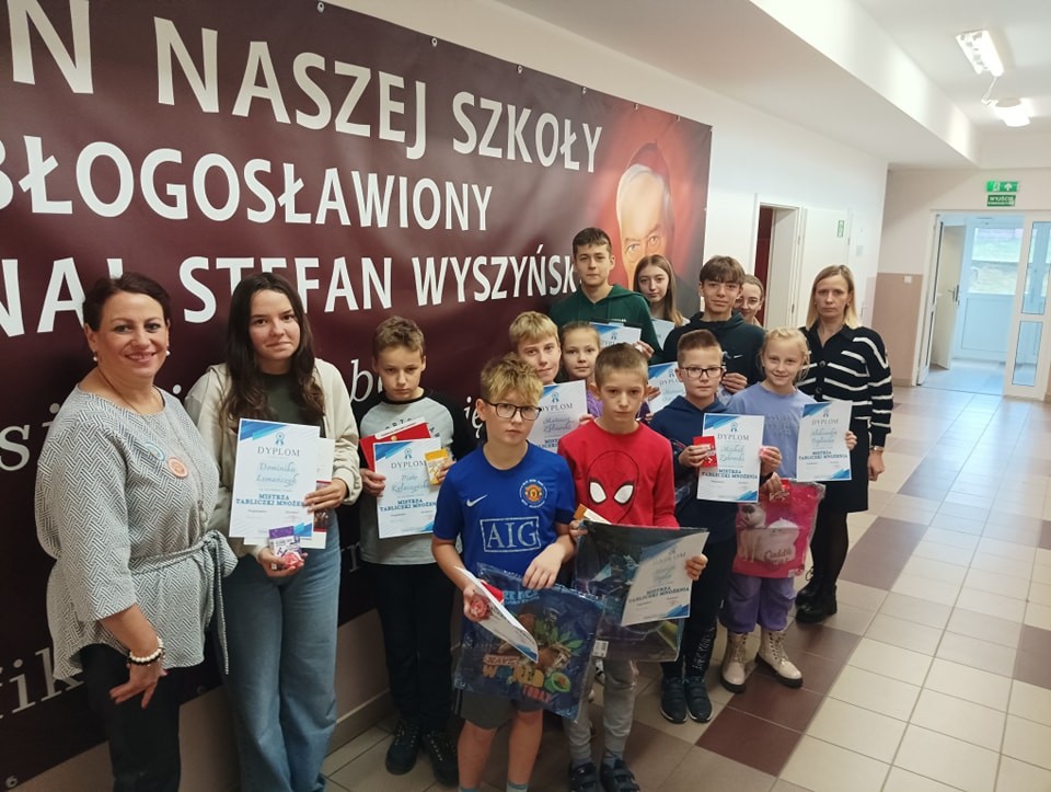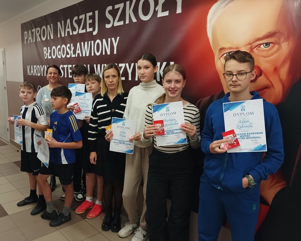 Również dzisiaj rozstrzygnięty został szkolny konkurs "Mistrz Tabliczki Mnożenia". Oto lista nagrodzonych osób: