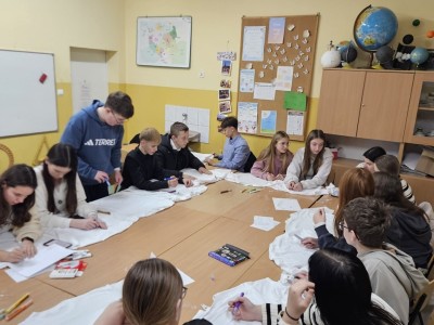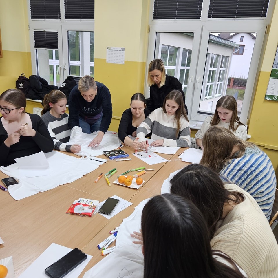 Po zakończeniu gali przyszedł czas na realizację kolejnego grantu. Tego dnia zainaugurowaliśmy warsztaty twórcze w ramach projektu pn. „Wspólne Serce Wolontariatu”. Celem warsztatów było zbliżenie uczniów, ich rodziców oraz pracowników szkoły poprzez wspólną twórczość. Właśnie w tym dniu zrealizowaliśmy pierwszą część projektu, podczas której uczestnicy mieli okazję zaprojektować i stworzyć piękne koszulki dla członków naszego klubu.