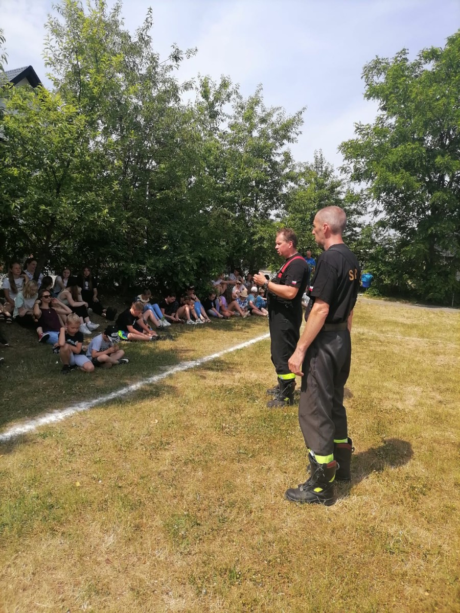 Dnia 22 czerwca 2021 r. dzięki uprzejmości Ochotniczej Straży Pożarnej z Leśna uczniowie naszej szkoły mieli możliwość poznania tajników pracy strażaka ochotnika oraz jego stroju. Ponadto Panowie Druhowie z Leśna pouczyli dzieci i młodzież jakie zagrożenia mogą pojawić się podczas wakacji. Wszyscy życzyliśmy sobie miłych i bezpiecznych wakacji.