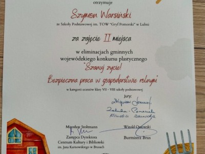 Uczniowie Szkoły Podstawowej im. TOW "Gryf Pomorski" w Lubni zajęli następujące miejsca: