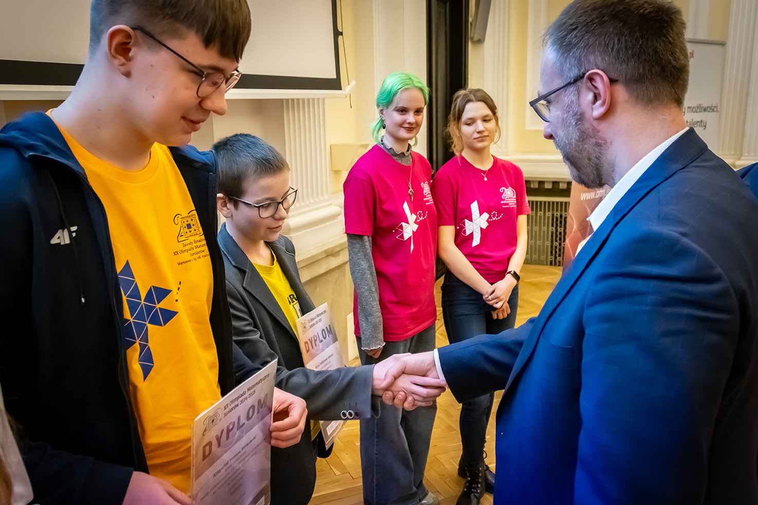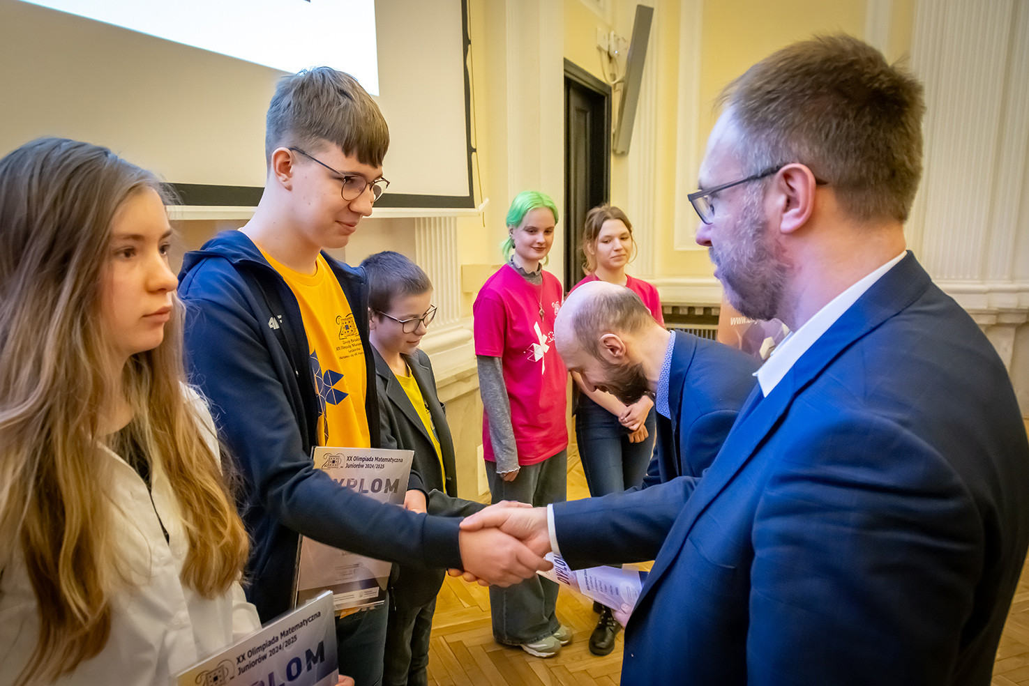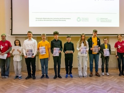 Do kolejnego dnia musiał się teleportować pod czują opieką rodziców (Pani Anny Kamińskiej oraz Pana Krzysztofa Zabrockiego) do Warszawy, bowiem uczestniczył w zawodach Olimpiady Matematycznej Juniorów na Wydziale Matematyki, Informatyki i Mechaniki Uniwersytetu Warszawskiego. Do finału XX edycji OMJ zakwalifikowanych zostało 150 uczniów ze 126 szkół podstawowych. Konkurs został podzielony na kilka etapów m.in. części testowej w szkole, z której Michał uzyskał maksymalną ilość punktów, część korespondencyjnej oraz półfinałów przeprowadzonych w dniu 11 stycznia 2025 r. w III Liceum Ogólnokształcącym im. Marynarki Wojennej RP w Gdyni.