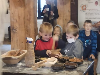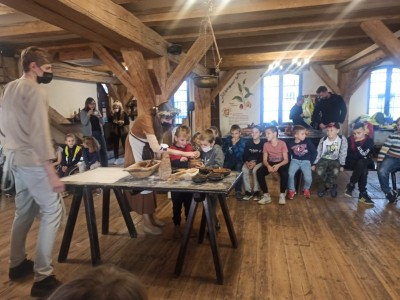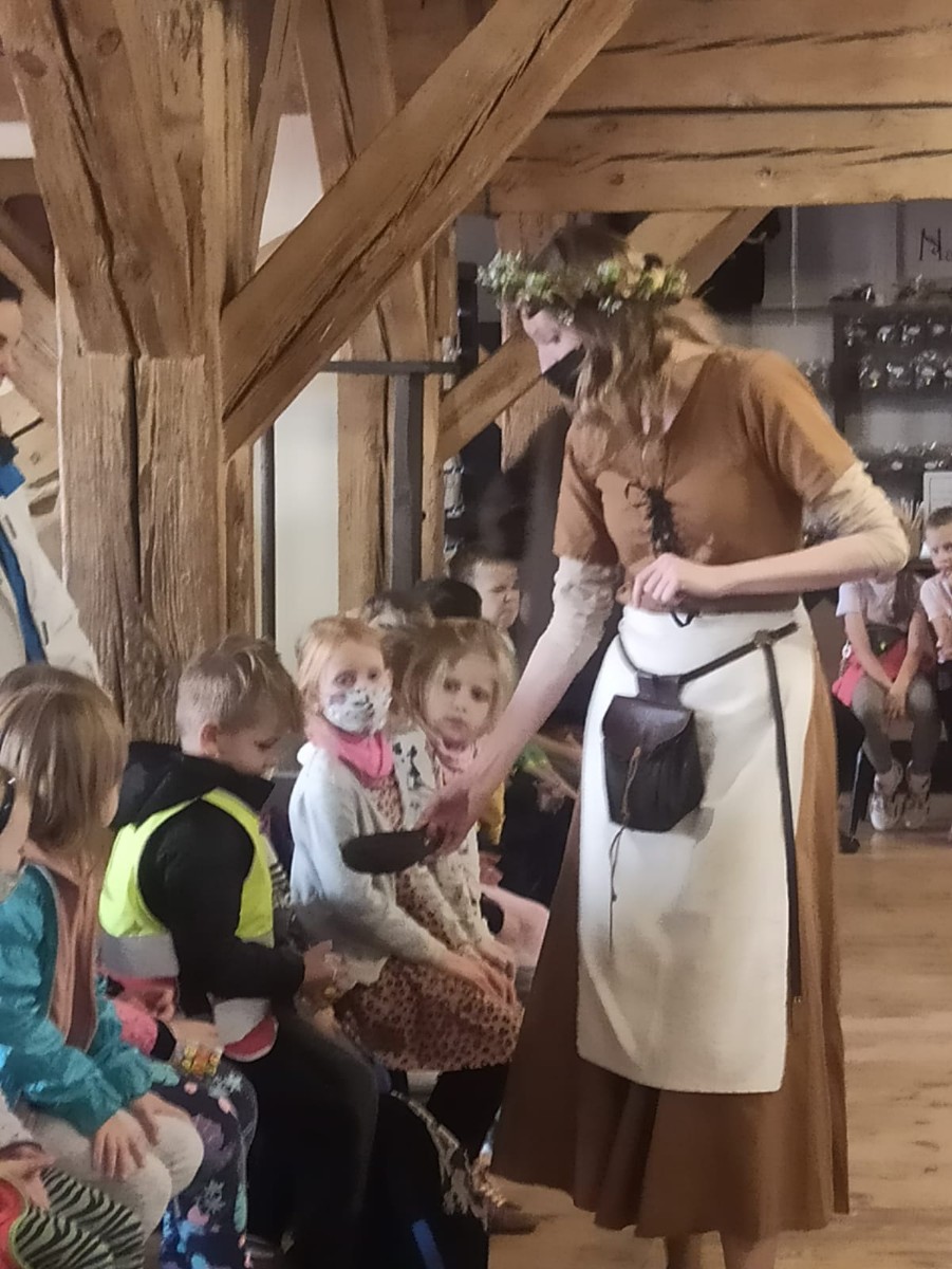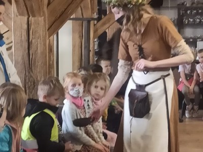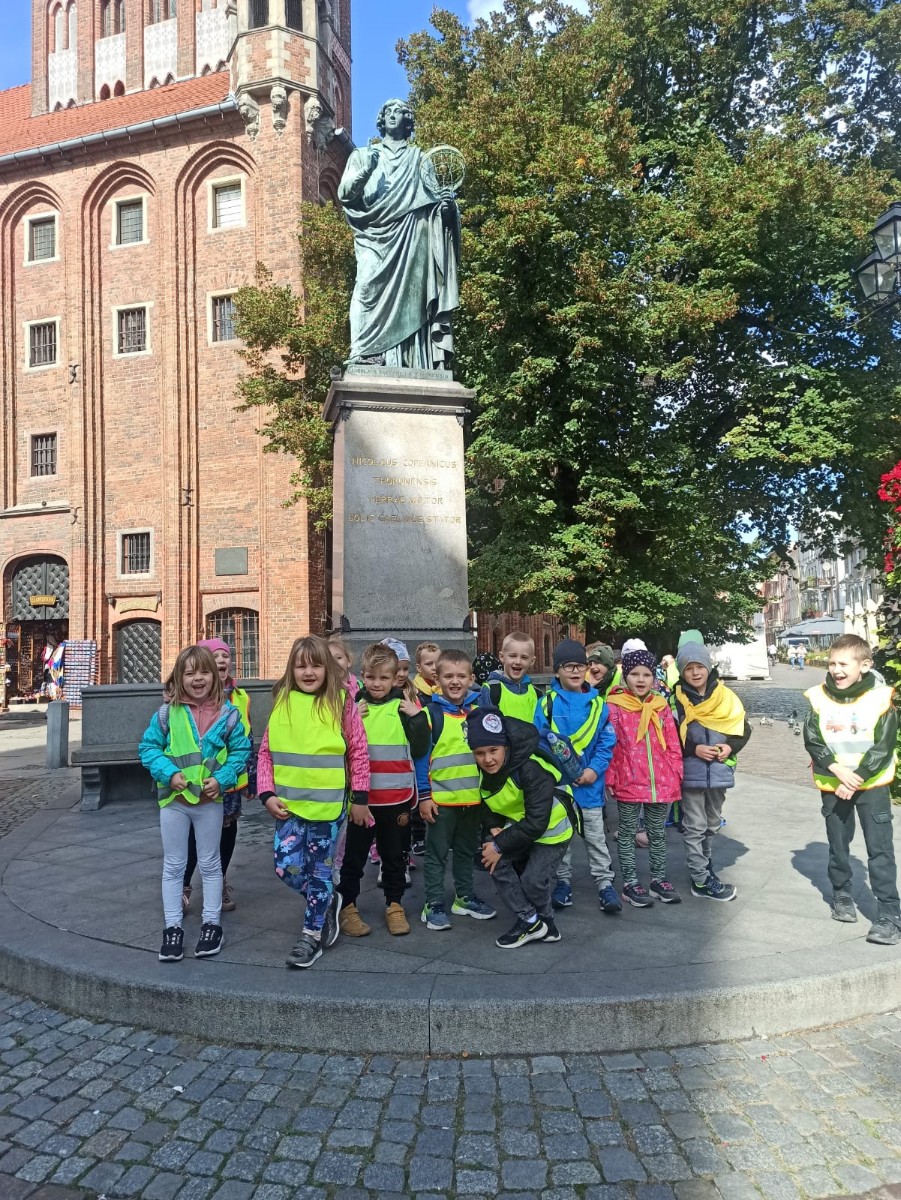 Dnia 21.09.2021r. oddziały przedszkolne przy SP nr 1 im. JPII w Brusach wraz z wychowawczyniami i opiekunami wybrały się na wycieczkę do Torunia. W tym dniu oprócz humorów dopisywała również słoneczna pogoda. Dzień zaczęliśmy od wizyty w Domu Legend Toruńskich, gdzie dzieci, a nawet panie, stały się bohaterami sześciu najsłynniejszych opowieści o dziejach miasta. Następnym punktem było zwiedzanie i poznanie historii słynnych zabytków toruńskich takich jak: Krzywa Wieża, Pomnik Mikołaja Kopernika, Pomnik flisaka, a także rzeźbę osiołka. W międzyczasie dzieci miały możliwość kupienia pamiątek dla siebie i swoich najbliższych. W kolejnej części tego dnia udaliśmy się do Żywego Muzeum Piernika. Nie było to tradycyjne muzeum, bowiem dzieci brały udział w interaktywnym pokazie. Poznały tam tajemnice związane z wypiekaniem piernika. Własnoręcznie przygotowały ciasto, z którego powstały niesamowite wypieki. Ostatnim etapem naszej wycieczki był wstęp do Centrum Popularyzacji Kosmosu na seans „ Cudowna podróż”. W trakcie seansu dzieci udały się w podróż po Układzie Słonecznym, lądowały na powierzchni Księżyca oraz Marsa. Poznały podstawowe gwiazdozbiory oraz związane z nimi mity, a także miały okazję sprawdzić czy w kosmosie można spotkać ufoludki. Dzień pełen przygód został zakończony spacerem po bulwarze.
