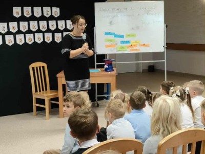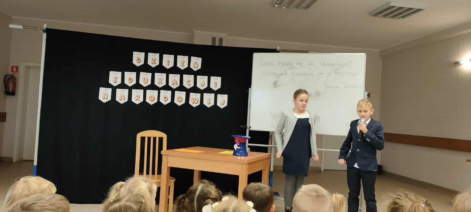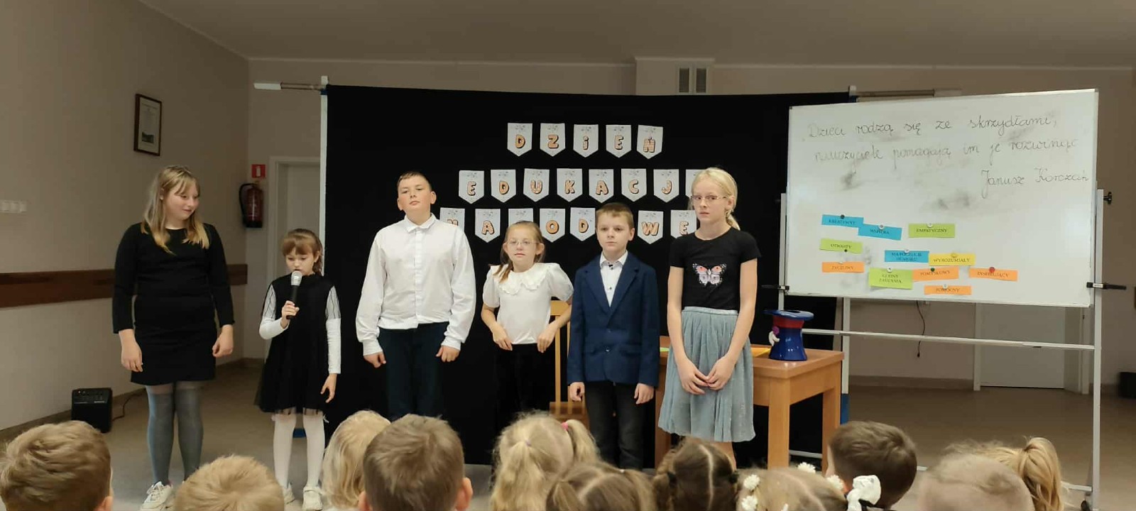 Z okazji Dnia Edukacji Narodowej w naszej szkole odbyła się uroczysta akademia przygotowana przez starszych uczniów. Podczas wydarzenia przedstawili oni historię powstania tego wyjątkowego święta oraz opowiedzieli, jak obchodzone jest ono w innych krajach. Na zakończenie części edukacyjnej odbył się quiz, który pozwolił sprawdzić, ile informacji uczestnicy zapamiętali z prezentacji. W dowód wdzięczności uczniowie złożyli życzenia oraz wręczyli upominki wychowawcom, nauczycielom oraz wszystkim pracownikom szkoły.. Serdeczne podziękowania kierujemy również do Rady Rodziców za owocną współpracę i pomoc w organizacji wydarzenia.