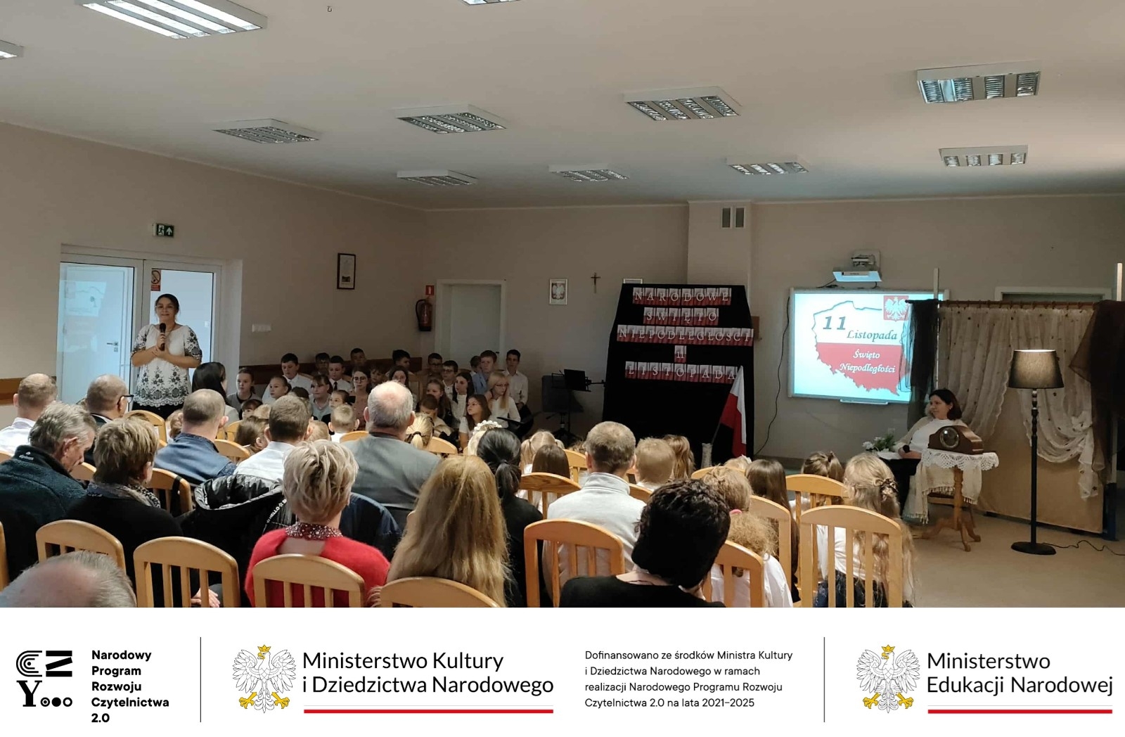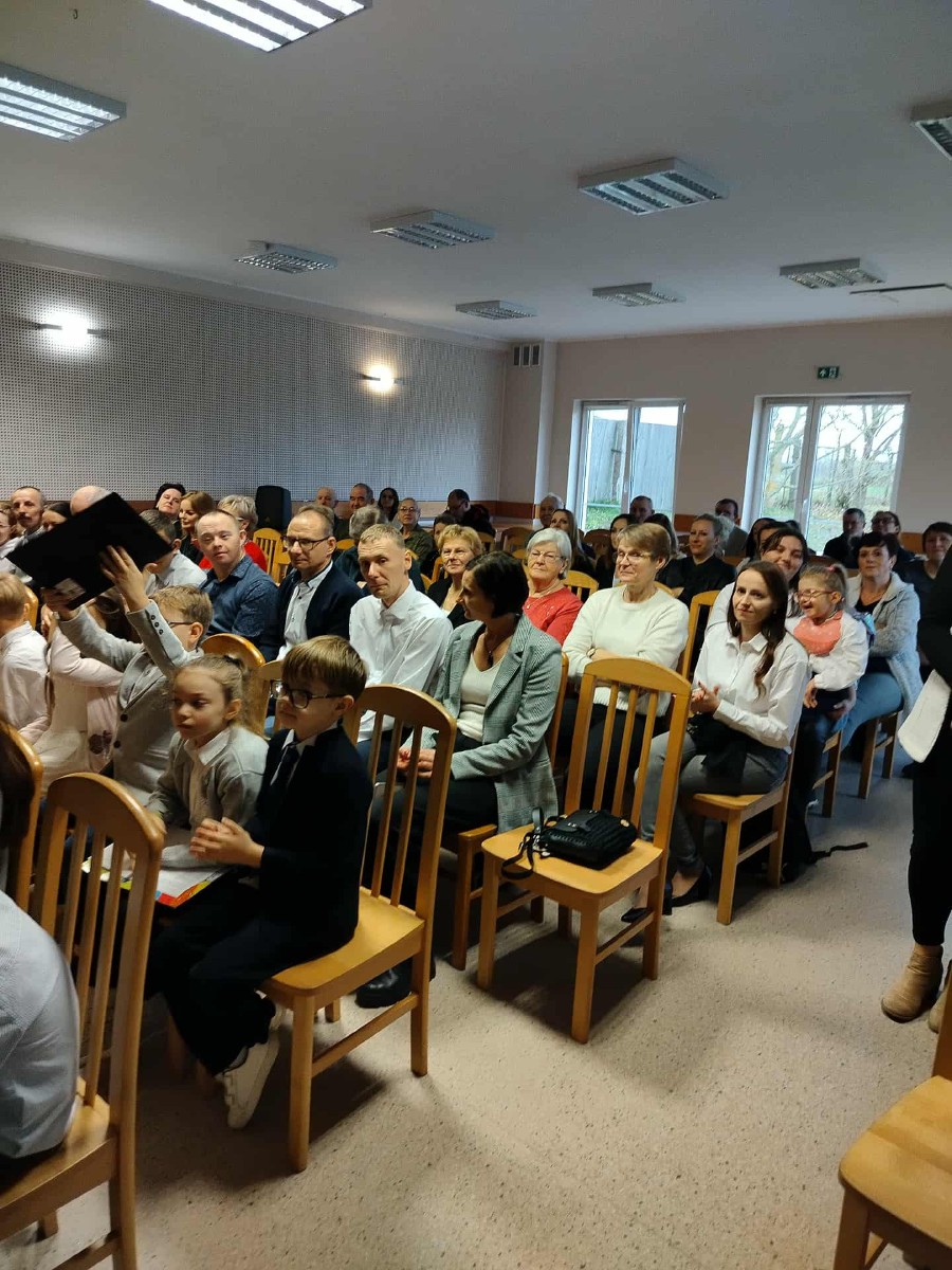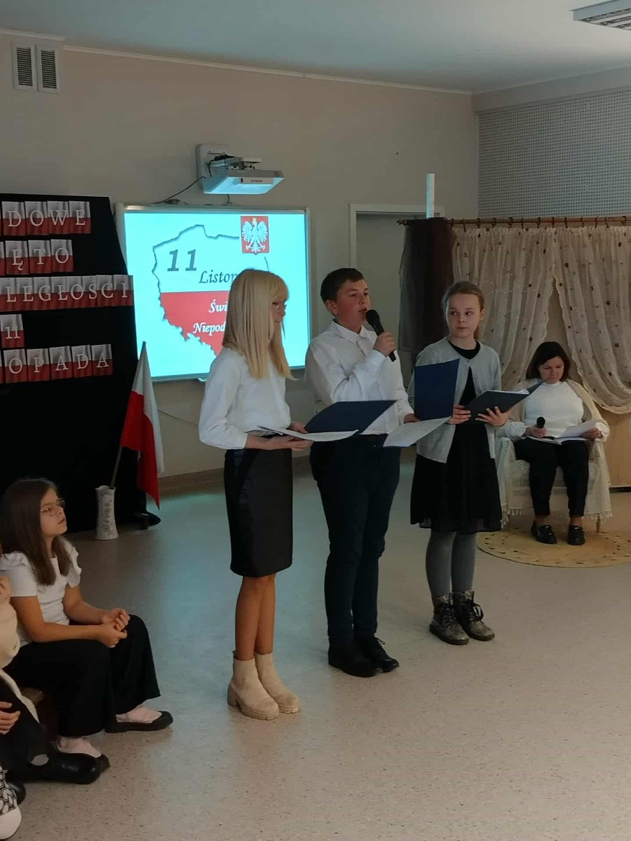 W dniu 14 listopada w naszej szkole odbył się uroczysty apel upamiętniający 107. rocznicę odzyskania przez Polskę Niepodległości zorganizowany dla społeczności lokalnej oraz uczestników Warsztatów Terapii Zajęciowej z Brus. W wydarzeniu wzięli udział zarówno uczniowie, jak i nauczyciele, którzy wspólnie przygotowali część artystyczną i historyczną. Uczniowie recytowali wiersze oraz przedstawili trudną drogę Polaków do wolności, od czasów rozbiorów aż po rok 1939. Wyśpiewane pieśni patriotyczne zachęcały wszystkich do wspólnego śpiewu i wspomnień. Całość przeplatana była fragmentami powieści "Asiunia” Joanny Papuzińskiej. Apel był nie tylko lekcją historii, ale także okazją do refleksji nad wartością wolności i odpowiedzialnością za przyszłość kraju. Dzięki zaangażowaniu uczniów i nauczycieli uroczystość miała podniosły i wzruszający charakter. Na koniec wszyscy odśpiewali Hymn Narodowy. Apel łączył w sobie realizację działań związanych z 2 kierunkiem polityki oświatowej państwa "Szkoła miejscem edukacji obywatelskiej - kształtowanie postaw patriotycznych, społecznych i obywatelskich, odpowiedzialności za region i ojczyznę, dbałości o bezpieczeństwo własne i innych" a także promowaniem czytelnictwa w ramach realizacji Narodowego Programu Rozwoju Czytelnictwa.