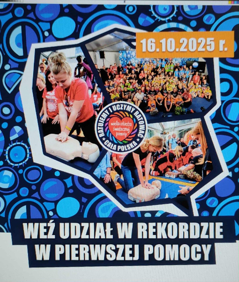 Fundacja WOŚP od ponad 19 lat popularyzuje wiedzę z zakresu pierwszej pomocy w ramach Programu Edukacyjnego "Ratujemy i Uczymy Ratować". Jednym ze sposobów na mówienie o tym, jak pomocy udzielać, jest Rekord w udzielaniu pierwszej pomocy, organizowany 16 października. W tym roku uczniowie klas I- III na zajęciach w-fu również przyłączyli się do akcji.