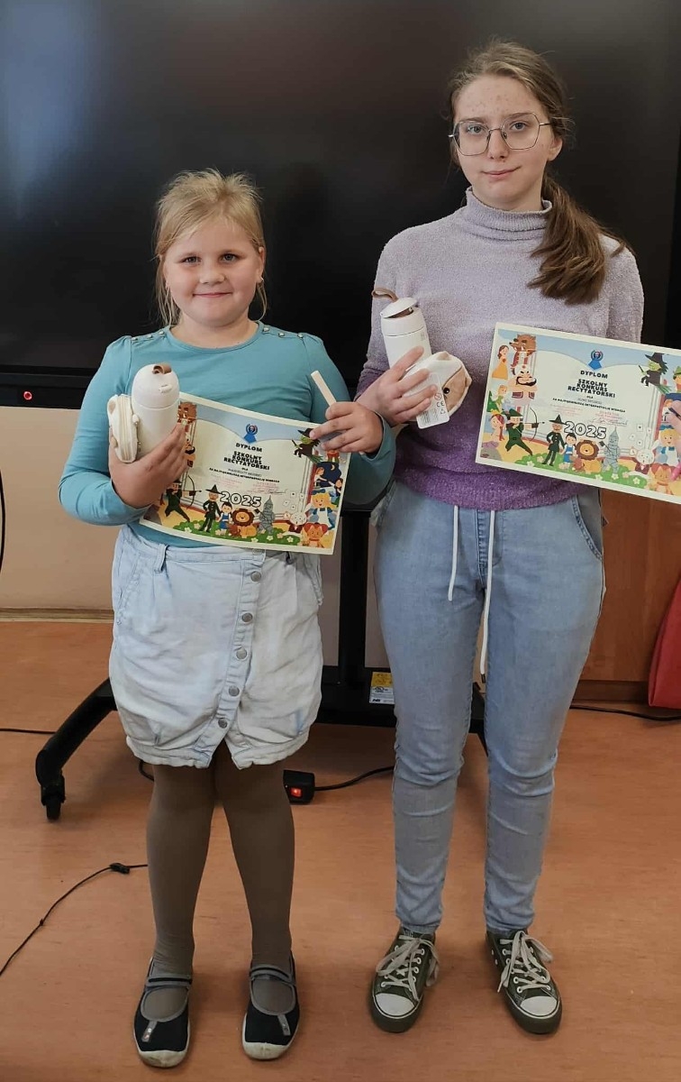 Dnia 7 października 2025 r. w naszej szkole odbył się Szkolny Konkurs Czytelniczy. Wzięło w nim udział 13 uczniów z klas I - VI. Główną nagrodę za najpiękniejszą interpretację wiersza zdobyły Małgorzata Bruska z klasy I i Oliwia Bruska z klasy VI. Uczennice te mają możliwość zaprezentowania wierszy również na Powiatowym Konkursie EkoArt w Chojnicach. Nagrody oraz upominki za udział ufundowała Rada Rodziców działająca przy Szkole Podstawowej w Czapiewicach. Serdecznie gratulujemy wszystkim uczestnikom.