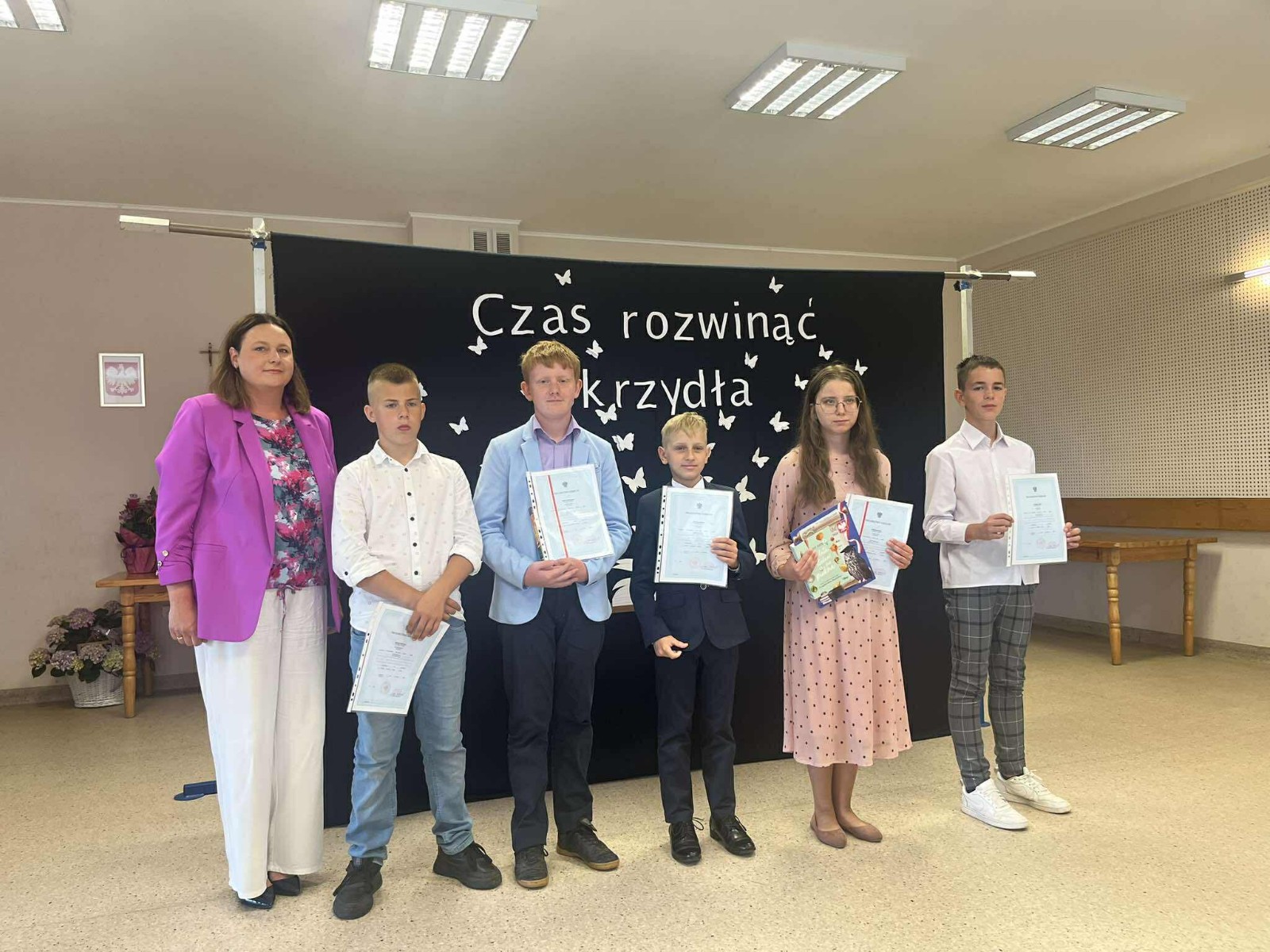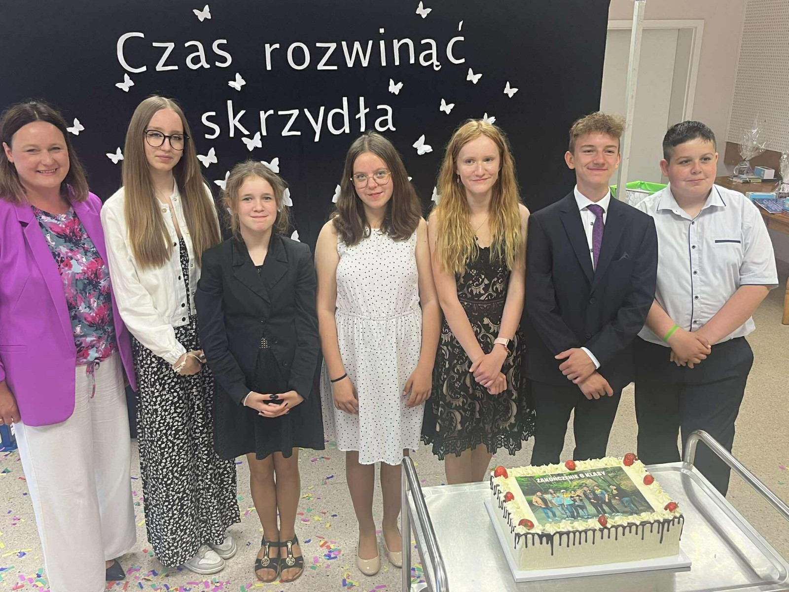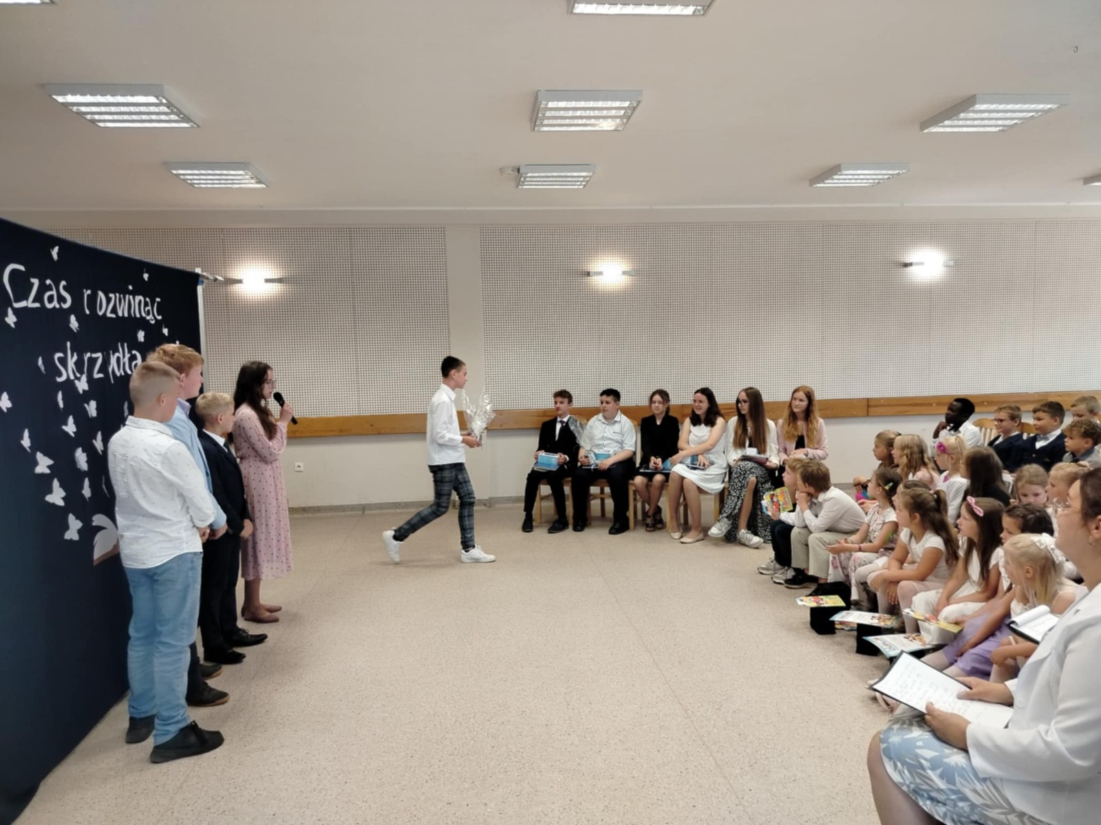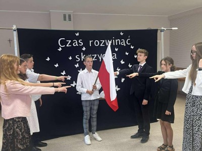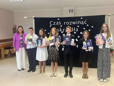 W piątkowy poranek o godzinie 9:15 rozpoczęła się uroczystość zakończenia roku szkolnego. Pani dyrektor serdecznie powitała wszystkich zgromadzonych uczniów, rodziców, nauczycieli oraz gości, wygłaszając przemówienie, w którym podsumowała minione miesiące nauki i wspólnej pracy. Następnie wychowawcy klas I–VI wręczyli swoim uczniom świadectwa, a Rada Rodziców nagrodziła uczniów. Uhonorowano również młodych miłośników książek oraz złożono podziękowania rodzinom za ich zaangażowanie i współpracę.🇵🇱 Jednym z podniosłych momentów było uroczyste ślubowanie uczniów klasy VI, którzy zakończyli edukację w naszej szkole. W części artystycznej uczniowie klasy V z czułością pożegnali starszych kolegów z klasy VI, a następnie to właśnie absolwenci wystąpili w przygotowanej przez siebie prezentacji artystycznej.