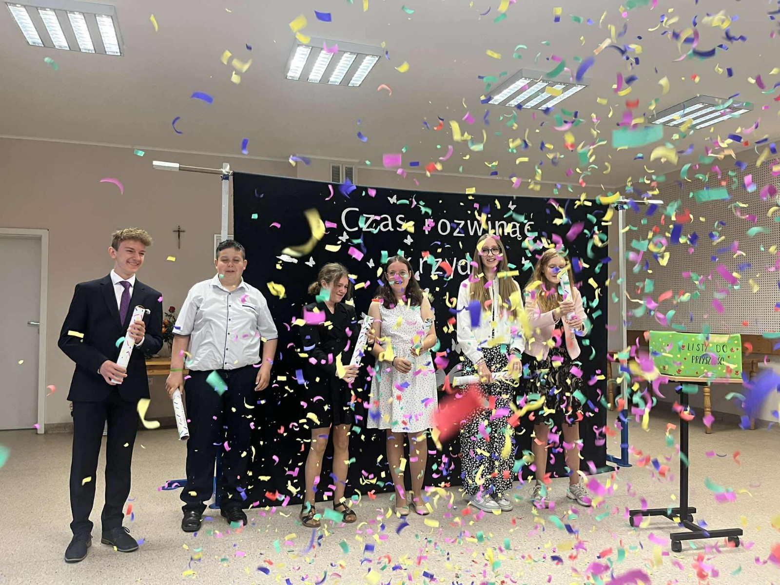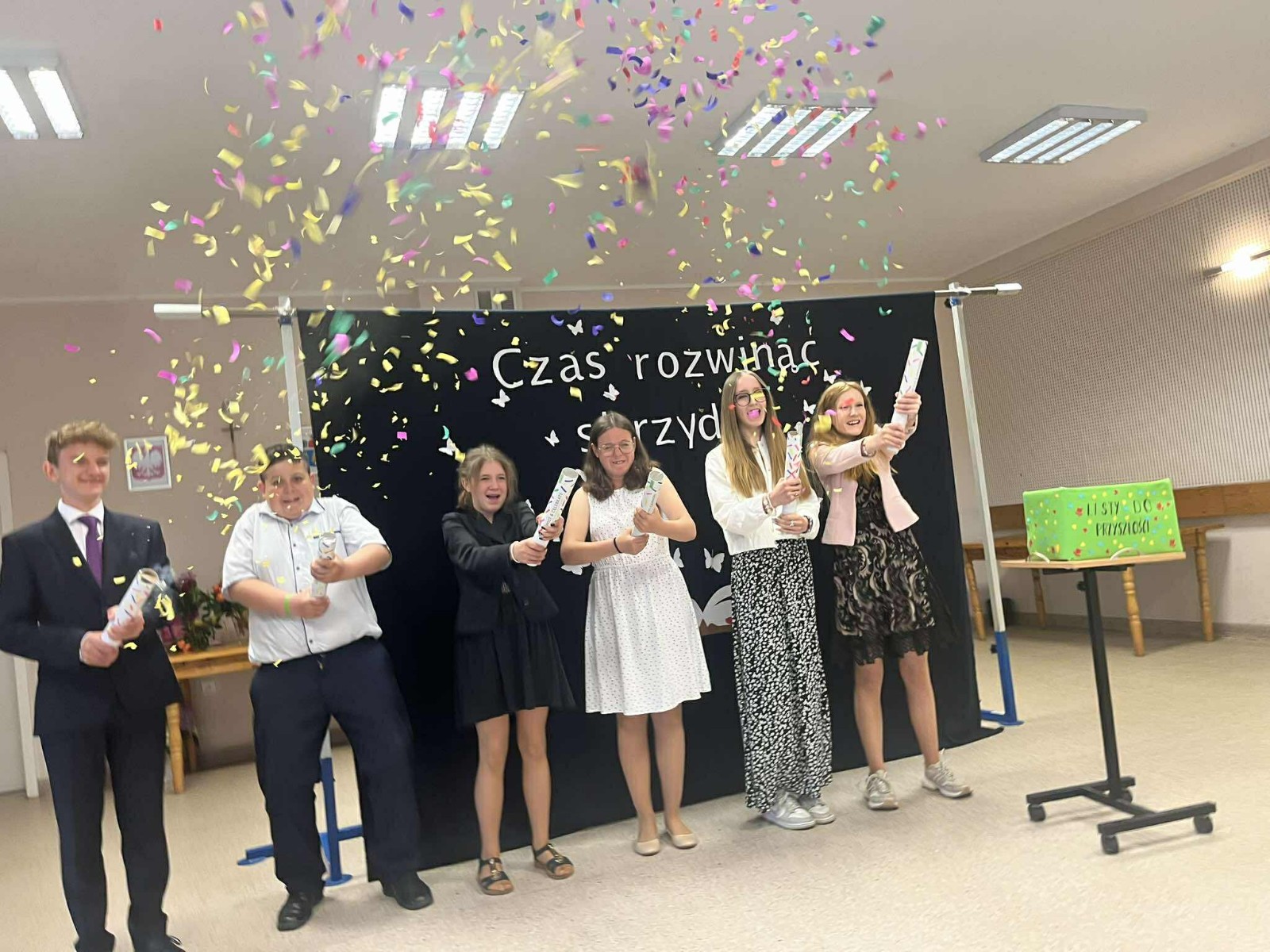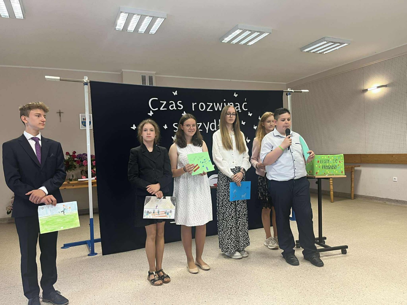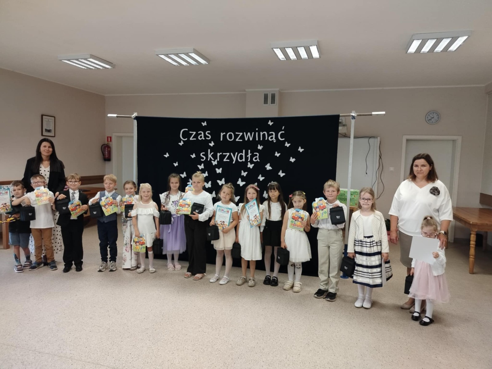 W piątkowy poranek o godzinie 9:15 rozpoczęła się uroczystość zakończenia roku szkolnego. Pani dyrektor serdecznie powitała wszystkich zgromadzonych uczniów, rodziców, nauczycieli oraz gości, wygłaszając przemówienie, w którym podsumowała minione miesiące nauki i wspólnej pracy. Następnie wychowawcy klas I–VI wręczyli swoim uczniom świadectwa, a Rada Rodziców nagrodziła uczniów. Uhonorowano również młodych miłośników książek oraz złożono podziękowania rodzinom za ich zaangażowanie i współpracę.🇵🇱 Jednym z podniosłych momentów było uroczyste ślubowanie uczniów klasy VI, którzy zakończyli edukację w naszej szkole. W części artystycznej uczniowie klasy V z czułością pożegnali starszych kolegów z klasy VI, a następnie to właśnie absolwenci wystąpili w przygotowanej przez siebie prezentacji artystycznej.