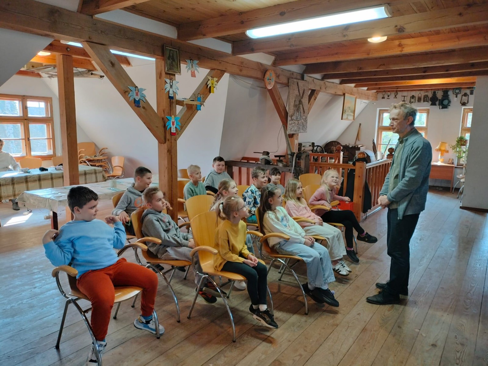 Dnia 24 marca 2025 roku klasa 1 uczestniczyła w wycieczce do Chaty Kaszubskiej im. Józefa Chełmowskiego w Brusach-Jagliach. Celem wyjazdu były warsztaty regionalne zatytułowane "Kaszubskie pisanki", mające na celu zapoznanie dzieci z historią ozdób wielkanocnych oraz tradycjami związanymi z malowaniem pisanek na Kaszubach.