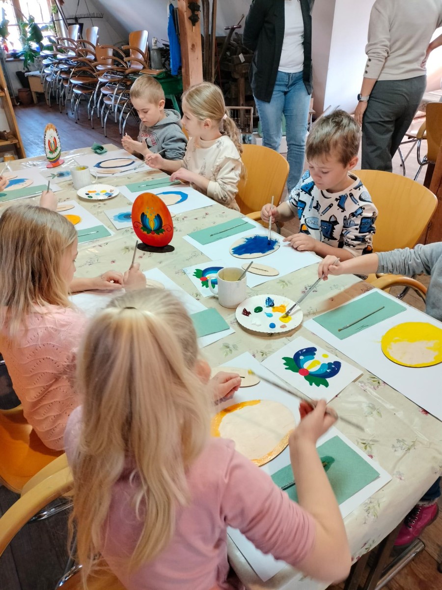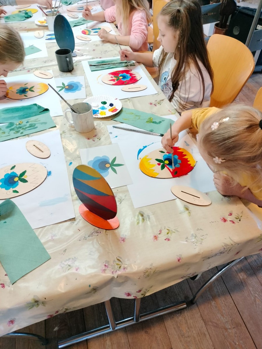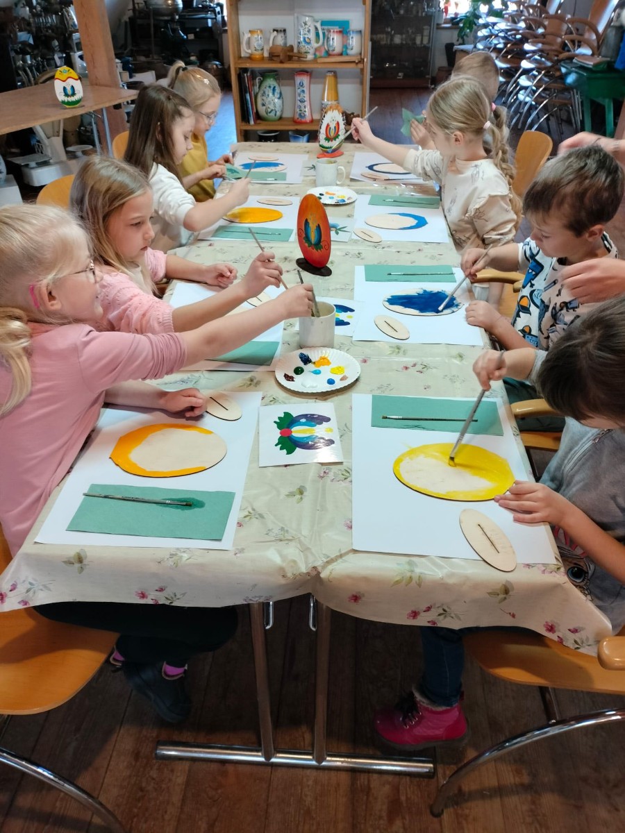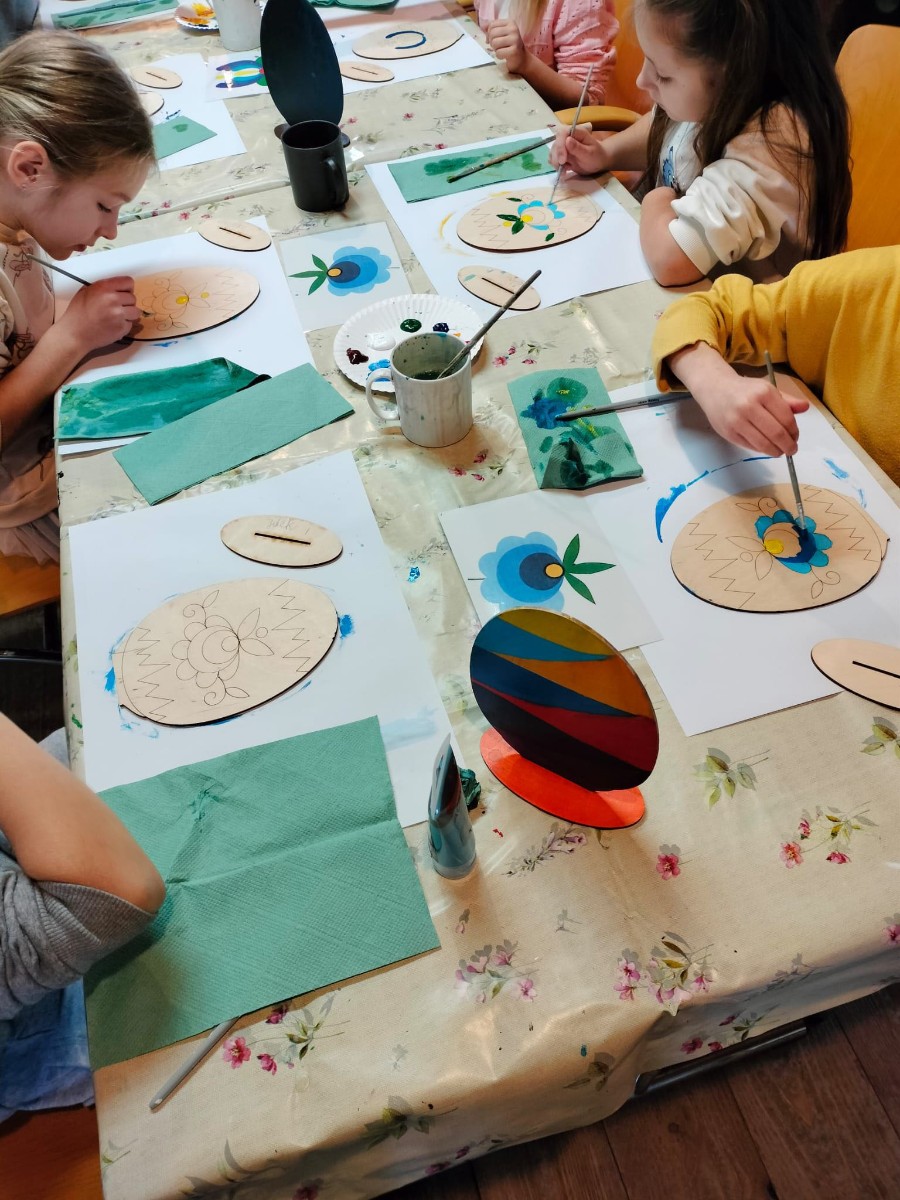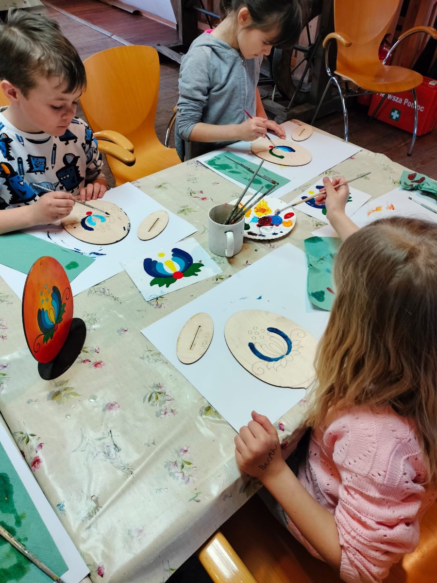 Podczas zajęć uczniowie poznali historię i znaczenie pisanek w kulturze kaszubskiej. Następnie, pod okiem prowadzących, samodzielnie malowali drewniane jajka, wykorzystując elementy haftu kaszubskiego oraz tradycyjne wzory regionalne. Każde dziecko po zakończeniu warsztatów zabrało ze sobą wykonaną pisankę na pamiątkę.