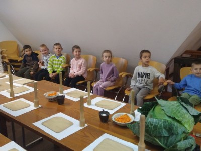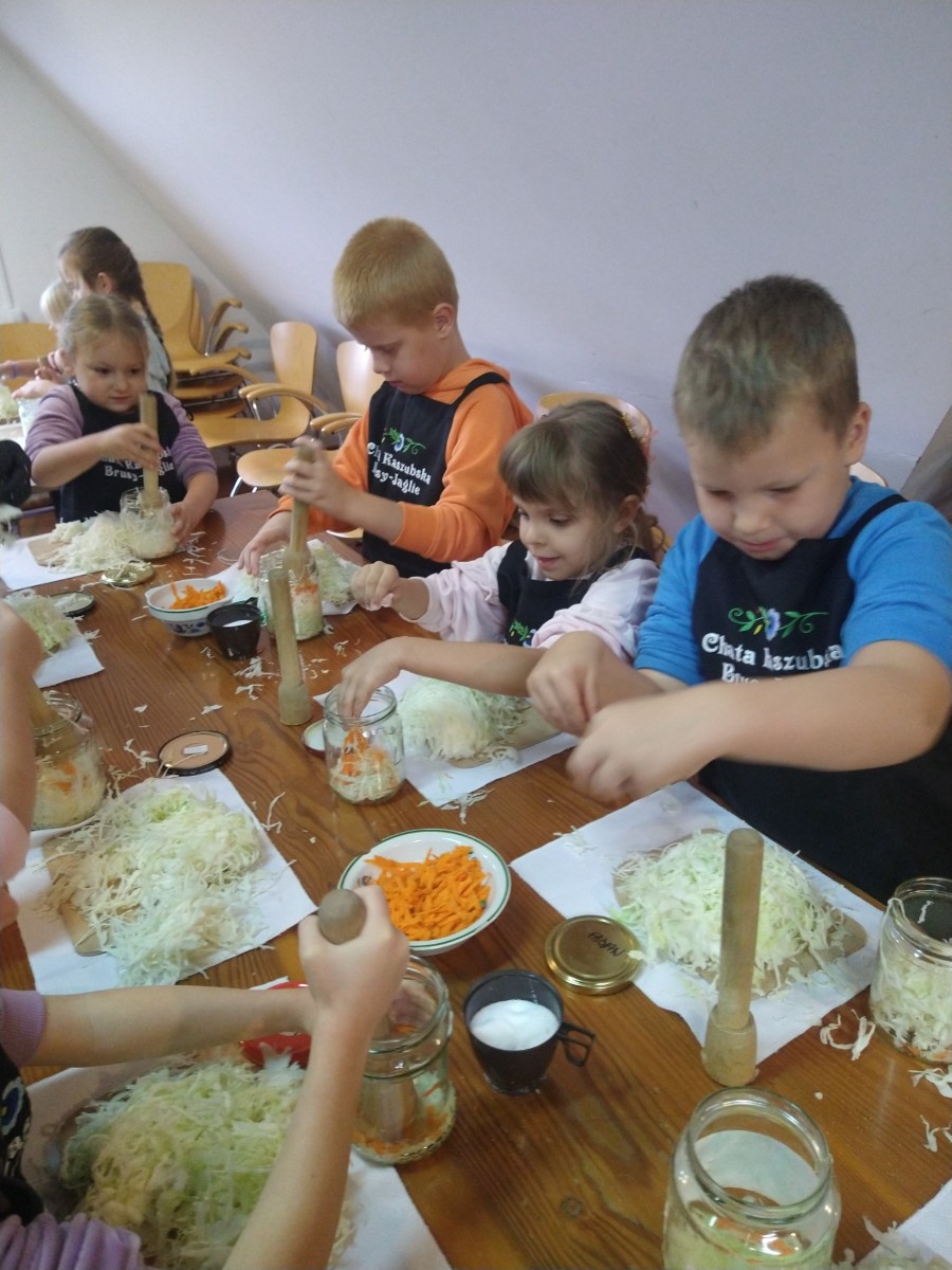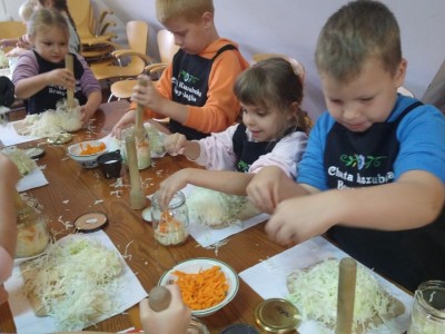 Dnia 6 października 2025 r. klasa „0” SP w Lubni wybrała się do Chaty Kaszubskiej na kiszenie kapusty. Pan Krzysztof w żartobliwy sposób opowiadał o tradycjach związanych z jej kiszeniem . Poznaliśmy etapy kiszenia od szatkownia do wkładania kapusty w słoiki i ubijania. Stare nazwy związane z tradycją kiszenia wcale nie są takie łatwe, ale zdaliśmy test śpiewająco. Nasze słoiki zostały wypełnione kapustą, a potem był poczęstunek, oczywiście kapusta kiszona z jabłkiem.