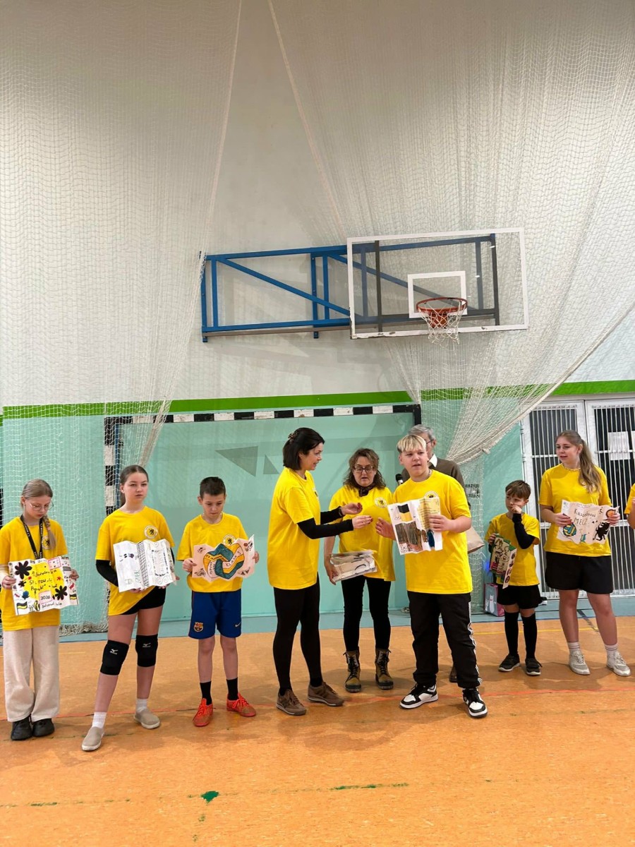 We wtorek 17 marca 2026 r. odbył się wyjątkowy „Mecz Kaszubski”, podczas którego obchodziliśmy również Dzień Jedności Kaszubów w naszej szkole. Uczniowie poszczególnych grup kaszubskich zaprojektowali własne papierowe klaskacze, które są nieodzownym atrybutem każdego fana sportu. Uczniowie zaprezentowali ogromną kreatywność, wykazując się niezwykłą wyobraźnią oraz pomysłowością. Z jednej strony kartki promowali nasze wydarzenie oraz szkołę, zaś z drugiej przedstawiali nasz wyjątkowy region - Kaszuby. Podkreślili również, że Święto Kaszubów jest obchodzone corocznie 19 marca na pamiątkę pierwszej pisemnej wzmianki o Kaszubach, która pojawiła się w bulli papieża Grzegorza IX z 19 marca 1238 roku. Najoryginalniejsze klaskacze wykonały Dorota Kosak Główczewska z kl. 6 oraz Aleksandra Rogala z kl. 7. Dziękujemy p. Monice Trawickiej za pomoc w wyborze prac. Docenione zostały postawy aktywnego kibicowania – bezkonkurencyjne wyróżnienie otrzymała p. Barbara Narloch wraz z klasą 6.