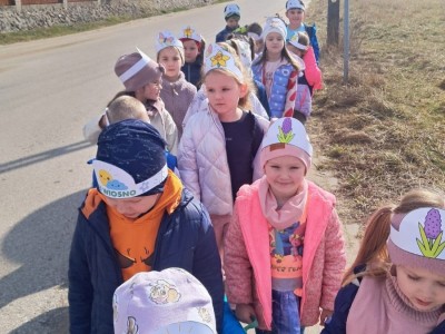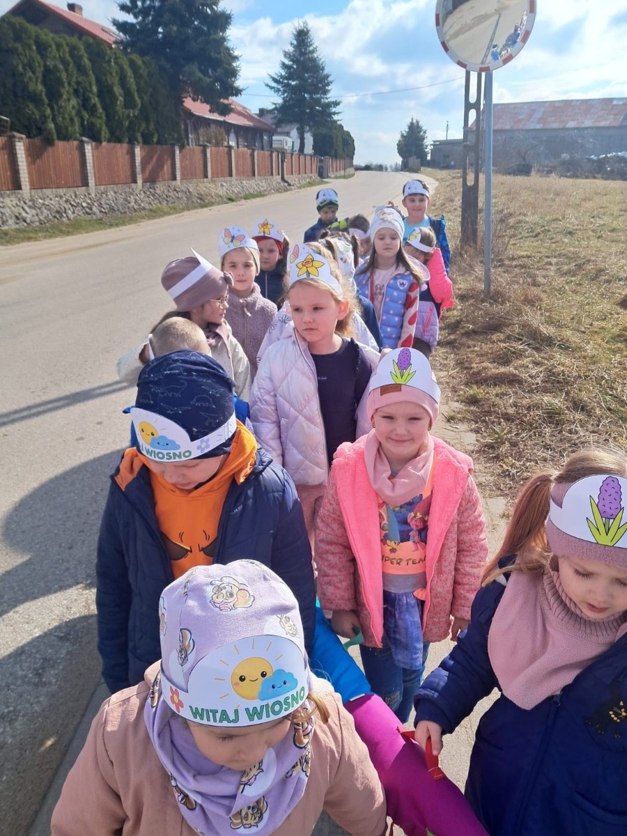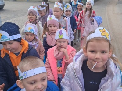 Przedszkolaki udały się także na spacer, aby szukać oznak wiosny śpiewając piosenki.