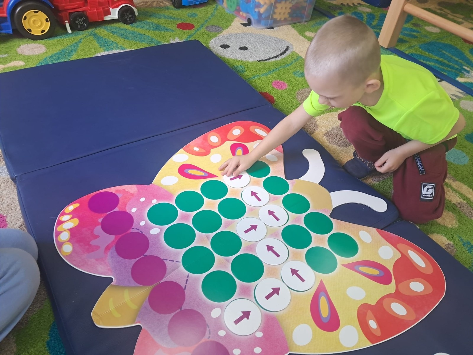 Zajęcia kompensacyjno-korekcyjne w ramach projektu ,,Gmina Brusy stawia na przedszkolaków" w Szkole Podstawowej w Zalesiu - nauka przez zabawę. Dzieci zdobywają wiedzę i umiejętności w sposób naturalny i przyjemny.