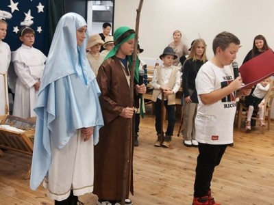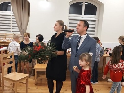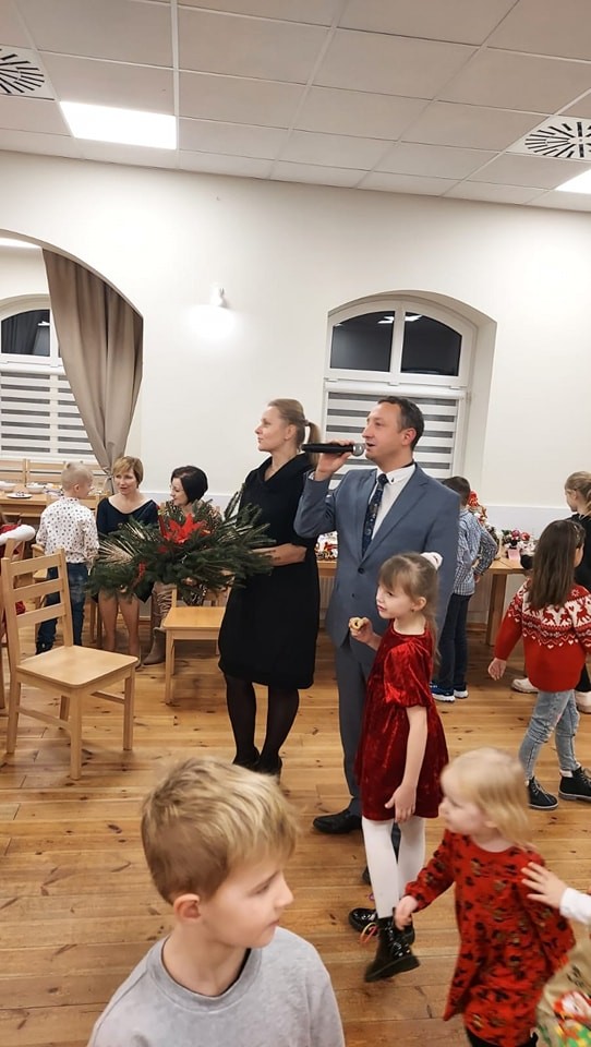 W Zalesiu odbył się kolejny wieczór przedświąteczny. W sali domu kultury zgromadziła się cała społeczność Zalesia: uczniowie wraz z rodzicami, nauczyciele naszej szkoły, a także goście z zewnątrz. Spotkanie otworzyły jasełka przygotowane przez uczniów klasy IV I V pod kierunkiem pani Beaty Przytarskiej. Kolejnym punktem była emocjonująca licytacja stroikow świątecznych przygotowanych przez dzieci. Pieniądze zebrane w czasie licytacji zasiliły konto naszej Rady Rodziców. Na koniec naszych najmłodszych gości odwiedził wyczekiwany Mikołaj z prezentami. Dziękujemy za wspólną organizację imprezy naszym niezawodnym partnerom: Radzie Sołeckiej, Radzie Rodziców, Kołu Gospodyń Wiejskich w Zalesiu.