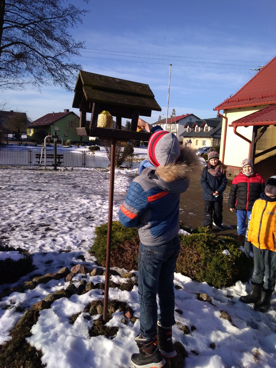 Okres zimowy to czas bardzo trudny i niepewny dla ptaków. Uczniowie klasy I postanowili pomóc ptakom przetrwać zimę, i na terenie naszej szkoły regularnie wsypujemy ziarno do karmników. Gości nam nie brakuje i każdy ptaszek znajdzie coś dla siebie.
