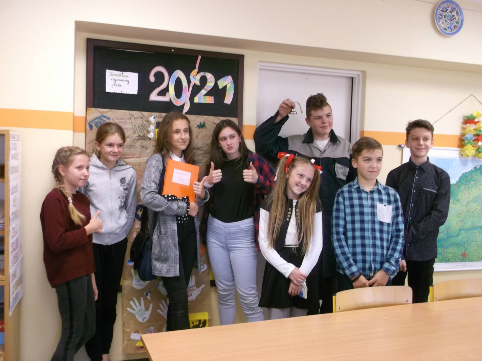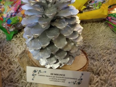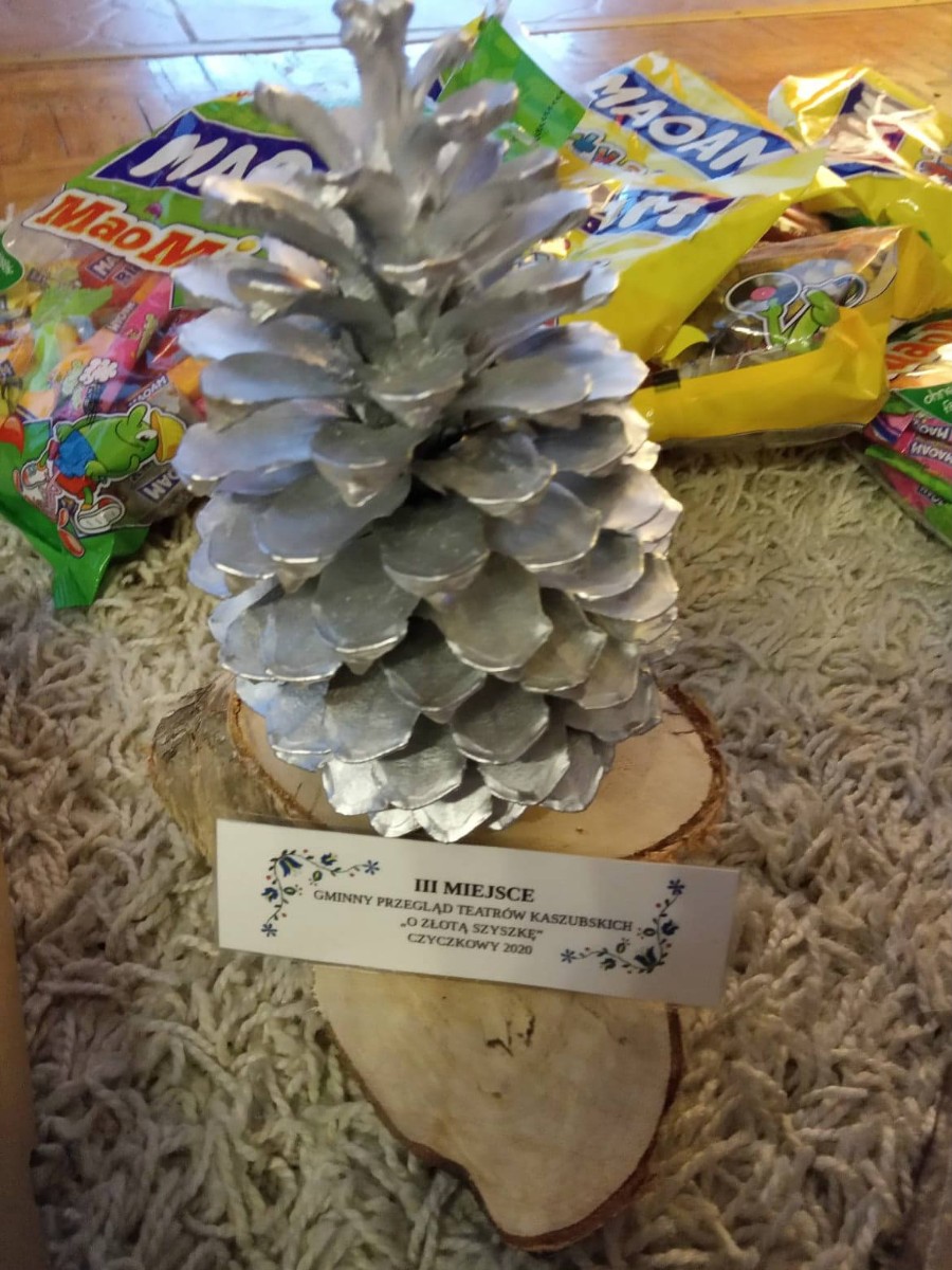 „Nasza ùczba” (lekcja dotyczyła haftu kaszubskiego) – spektakl w języku regionalnym kaszubskim, na podstawie scenariusza p. Doroty Formeli, uplasował się na III miejscu konkursowym, za które otrzymaliśmy Srebrną Szyszkę. Reżyserem przedstawienia była p. Justyna Górska, zaś w nagranie filmu zaangażowała się p. Magdalena Wysińska, której serdecznie dziękujemy za współpracę.