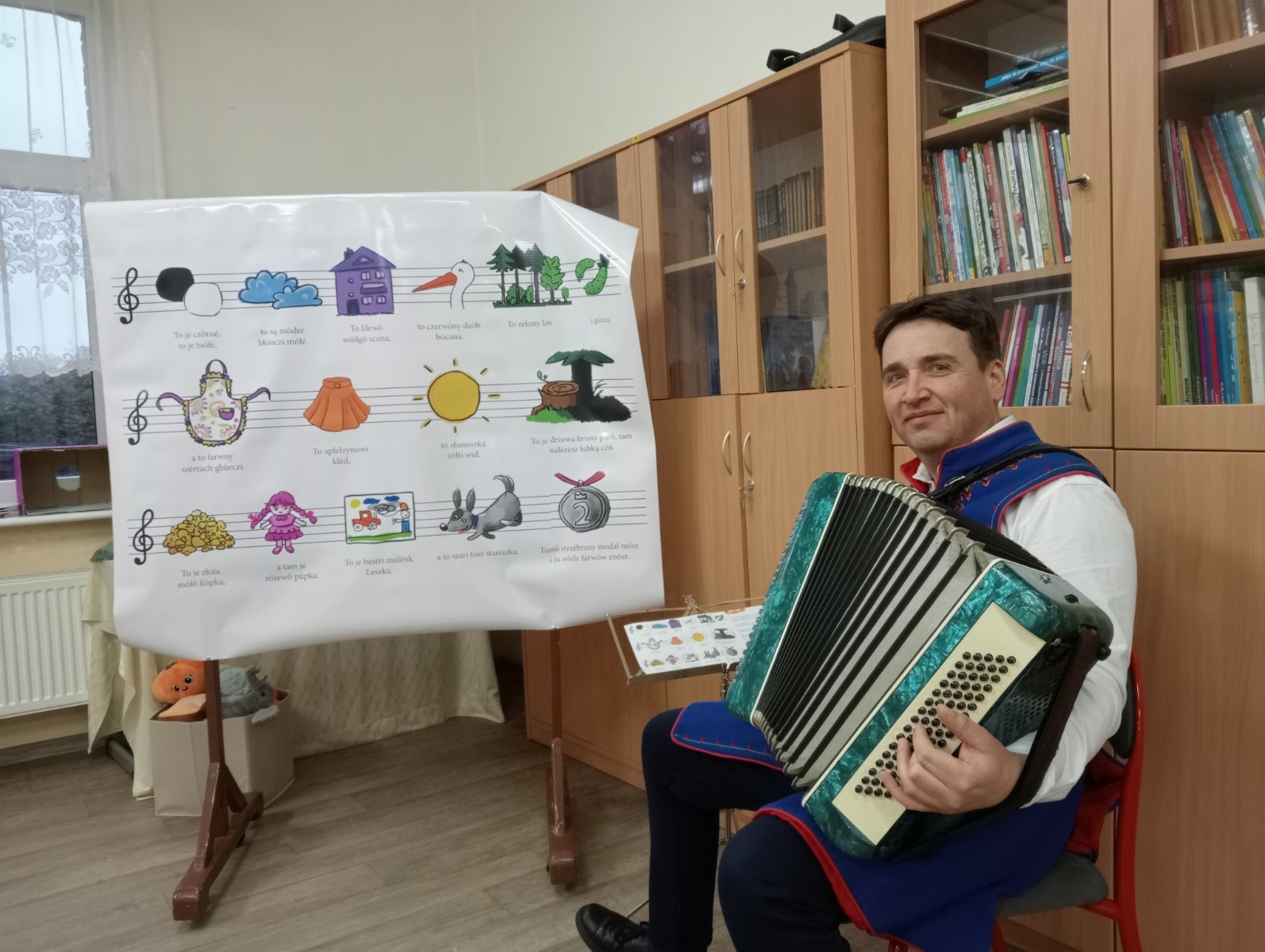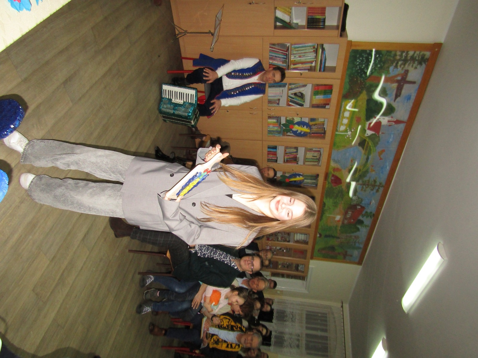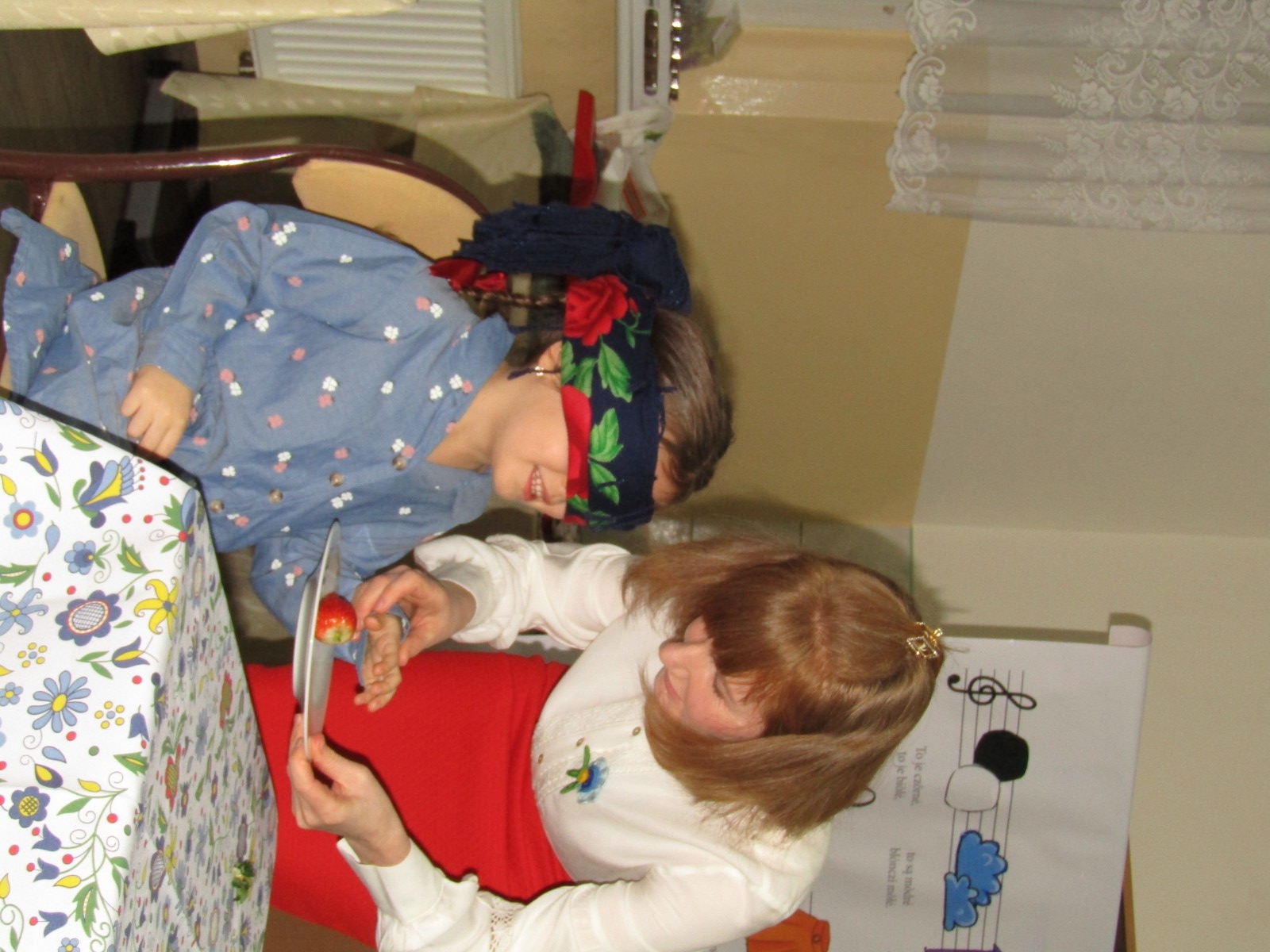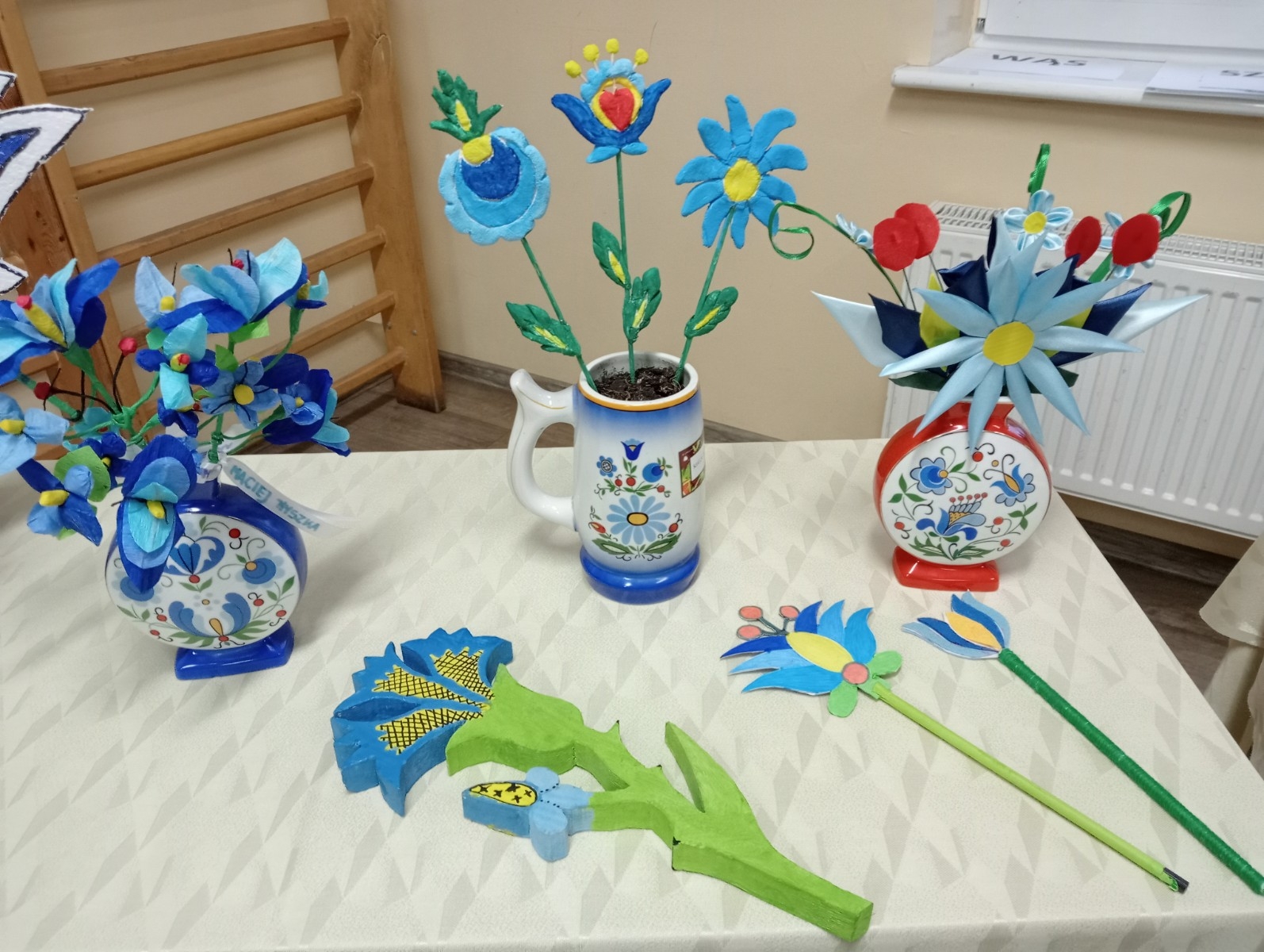 Ponadto odbyły się różne konkursy. Jeden polegał na wskazaniu kaszubskiej nazwy kwiatów ze wzorów kaszubskich. Kolejny na rozpoznaniu po smaku lub dotyku warzyw i owoców oraz podaniu ich kaszubskiej nazwy. Najważniejszą częścią wieczoru była prezentacja, wykonanych przez uczniów i ich rodziny, pięknych i bardzo pomysłowych kwiatów kaszubskich. Można było także poznać swoją przyszłość, która była ukryta w „babeczce z wróżbą”. Nie zabrakło oczywiście wspólnych śpiewów w kaszubskim języku oraz nauki nut o kolorach.