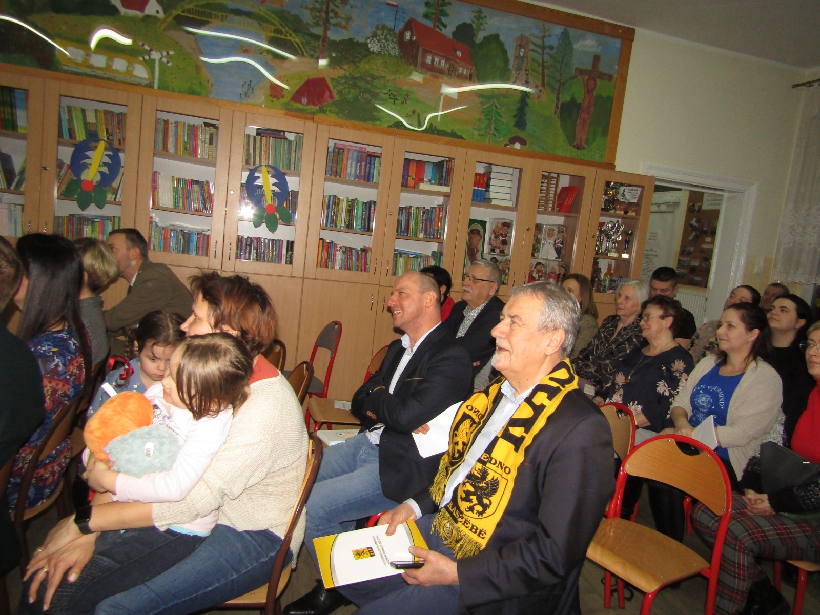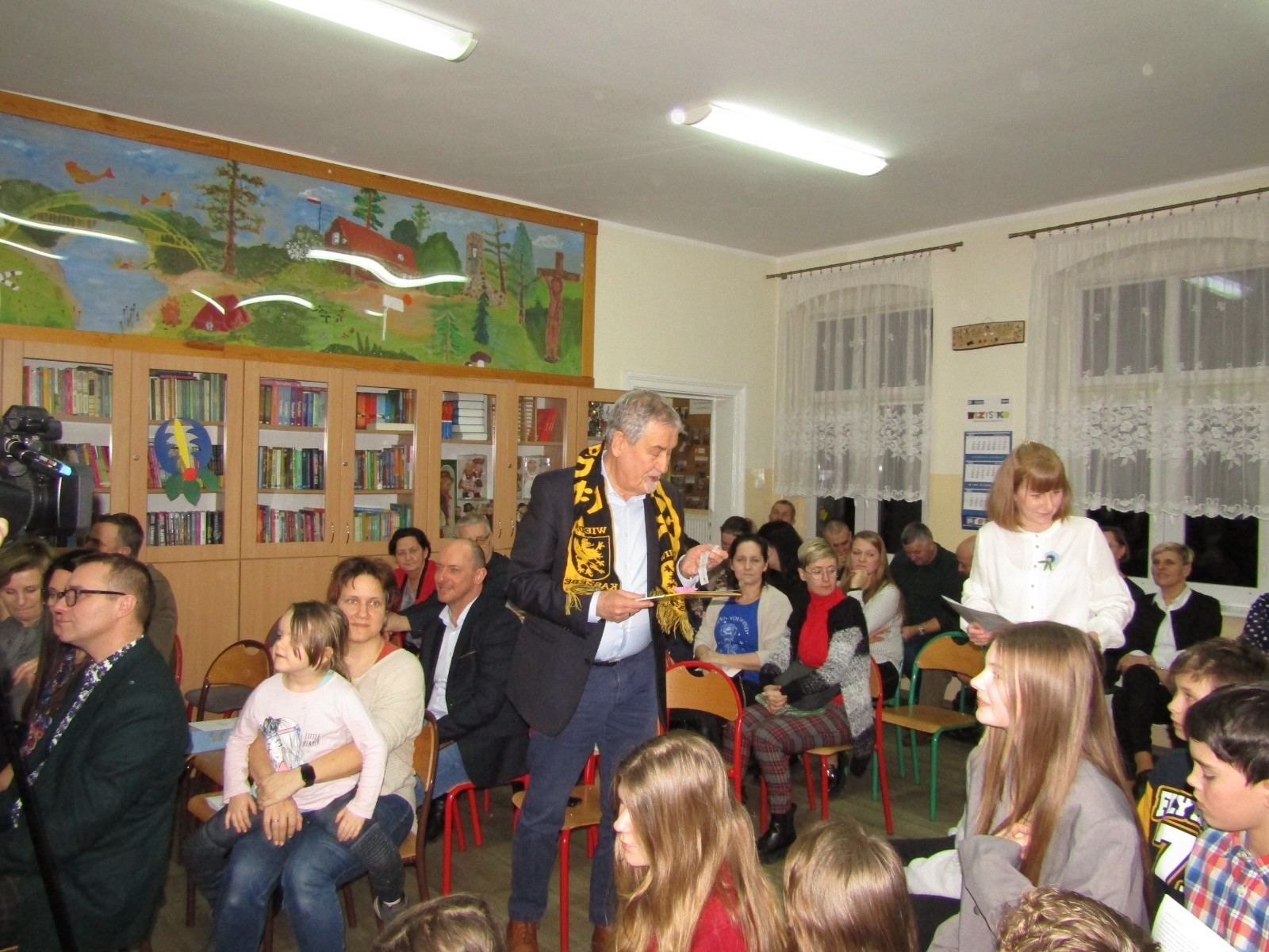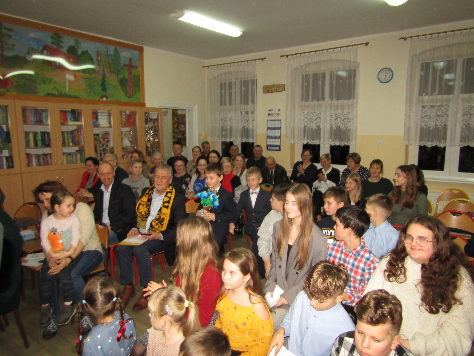 Wieczór rozpoczął się czytaniem napisanych przez uczniów legend o kolorach. Podjęli się tego zaproszeni goście: Jan Wyrowiński, prezes Zrzeszenia Kaszubsko – Pomorskiego, Mariola Rodzeń, sekretarz Gminy Brusy, Anna Kłopotek, przewodnicząca Rady Rodziców Szkoły Podstawowej w Męcikale i przedstawiciel rodziców Joanna Szczęsna.